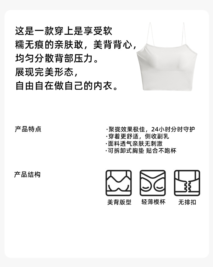 抖音直播爆款可调节肩带背心一片式无痕文胸时尚固定杯吊带内衣女