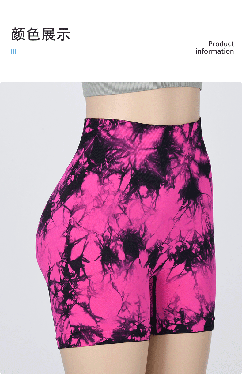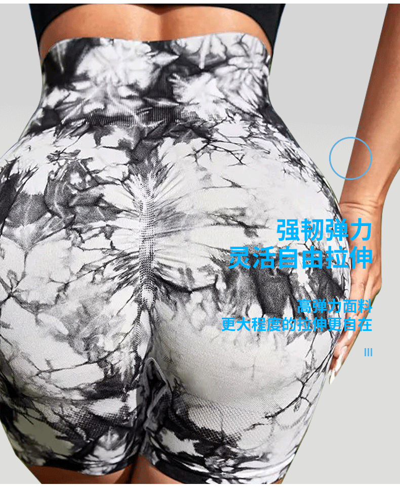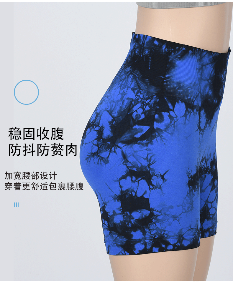 크로스 보더 심리스 타이 염료 스포츠 타이트 3 부분 바지 아우터 섹시 요가 피트니스 반바지 여성용 하이 웨이스트 힙 리프팅 및 복부 턱