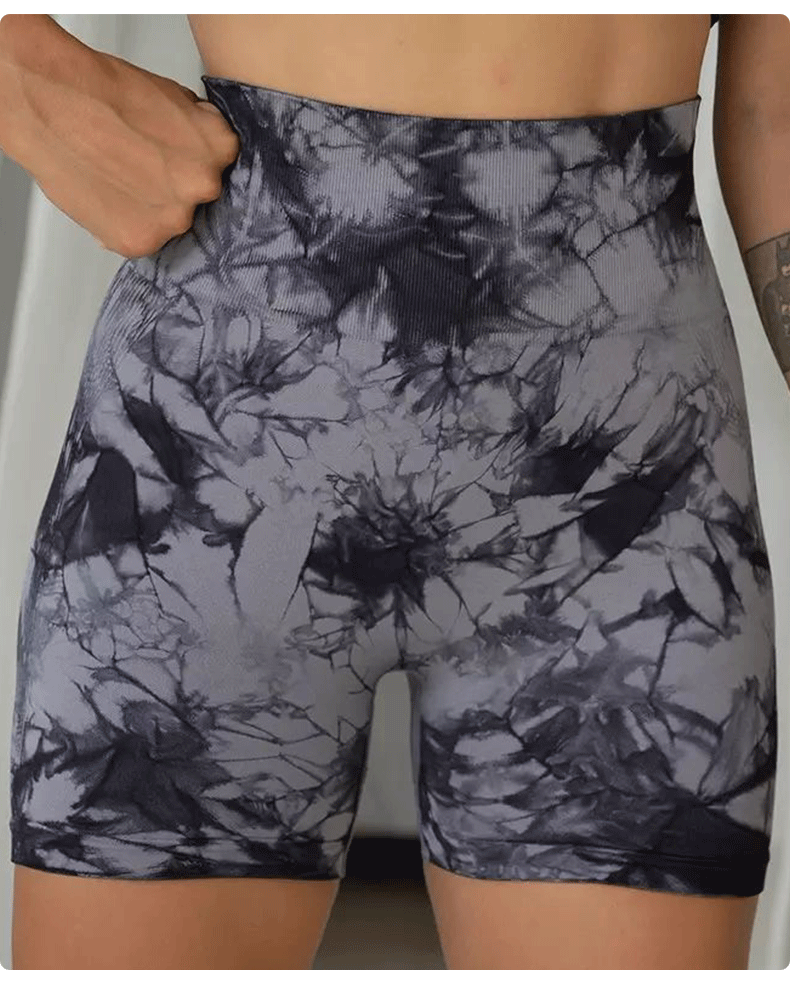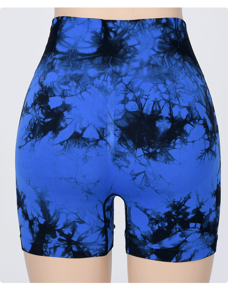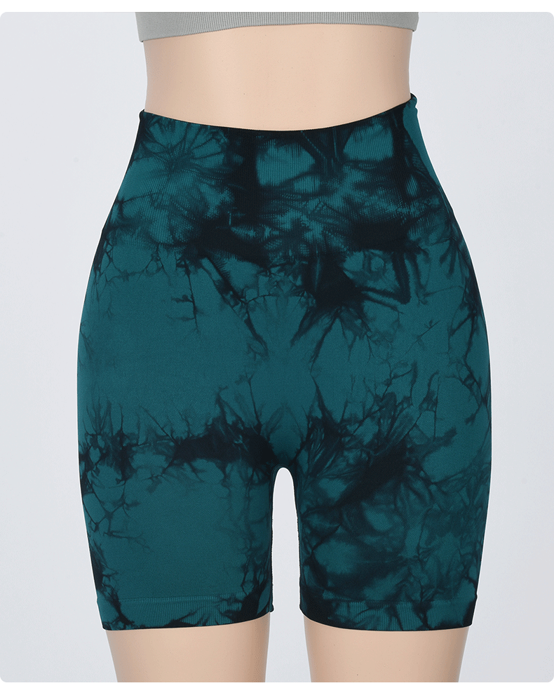 크로스 보더 심리스 타이 염료 스포츠 타이트 3 부분 바지 아우터 섹시 요가 피트니스 반바지 여성용 하이 웨이스트 힙 리프팅 및 복부 턱스토어 가기