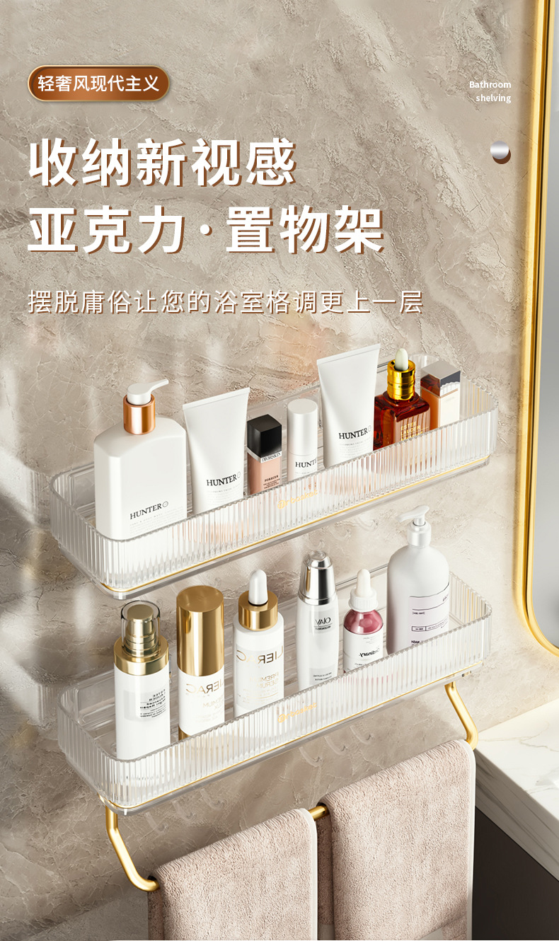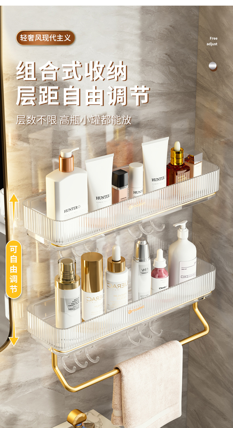 화장실 수납 랙 화장실 욕실 세탁 및 세탁 테이블 펀치 프리 선반 라이트 럭셔리 벽걸이 형 수납 랙스토어 가기