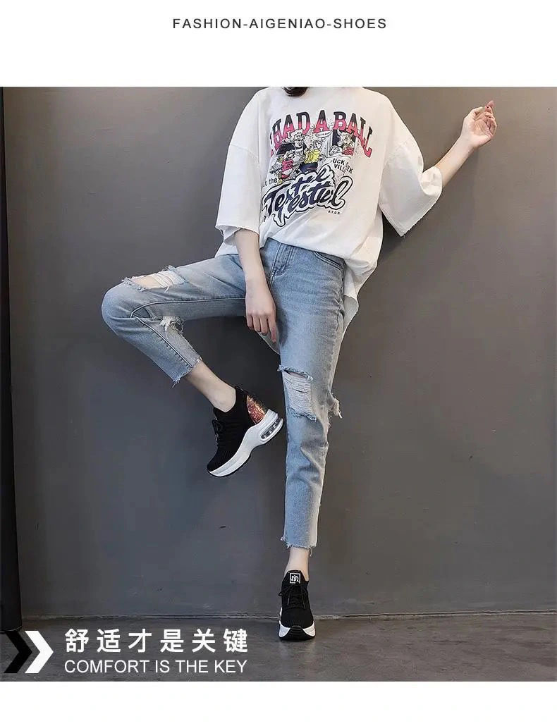 2023 봄과 여름 새로운 메쉬 증가 작은 흰색 신발 여성 신발 대외 무역 국경 통기성 캐주얼 운동화 도매스토어 가기