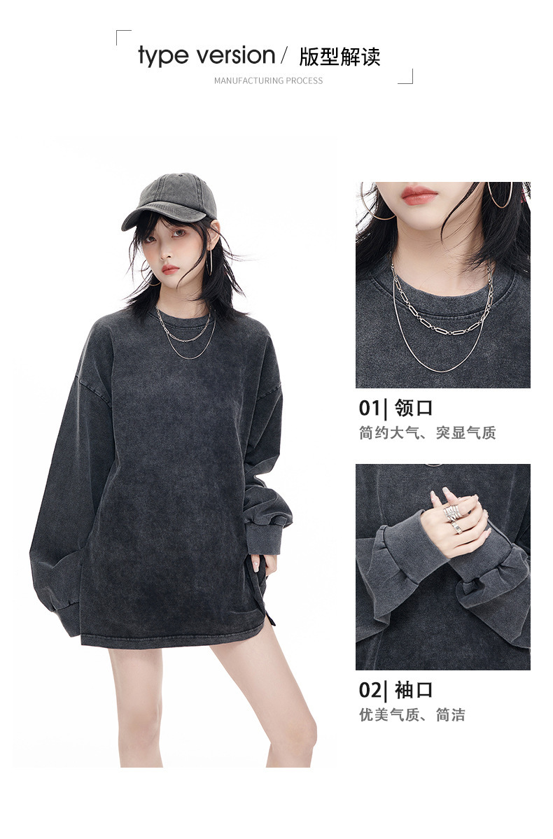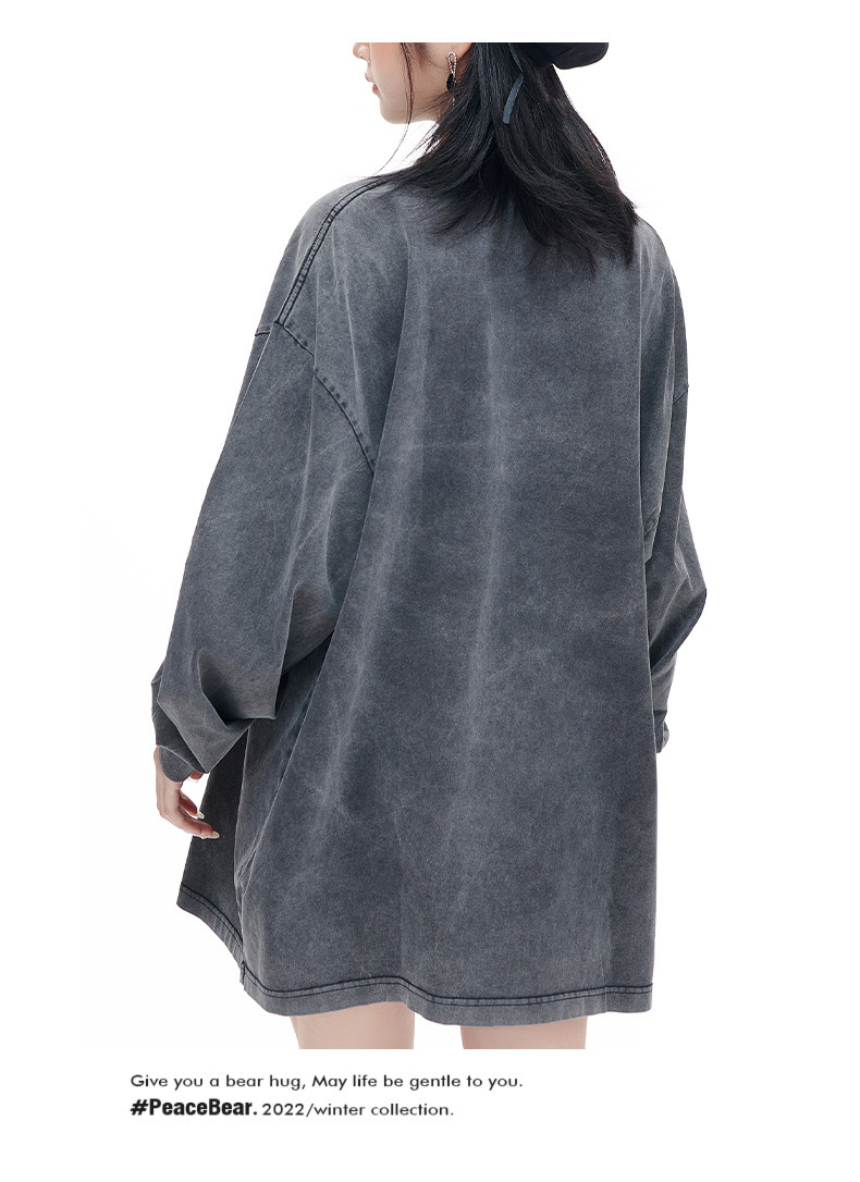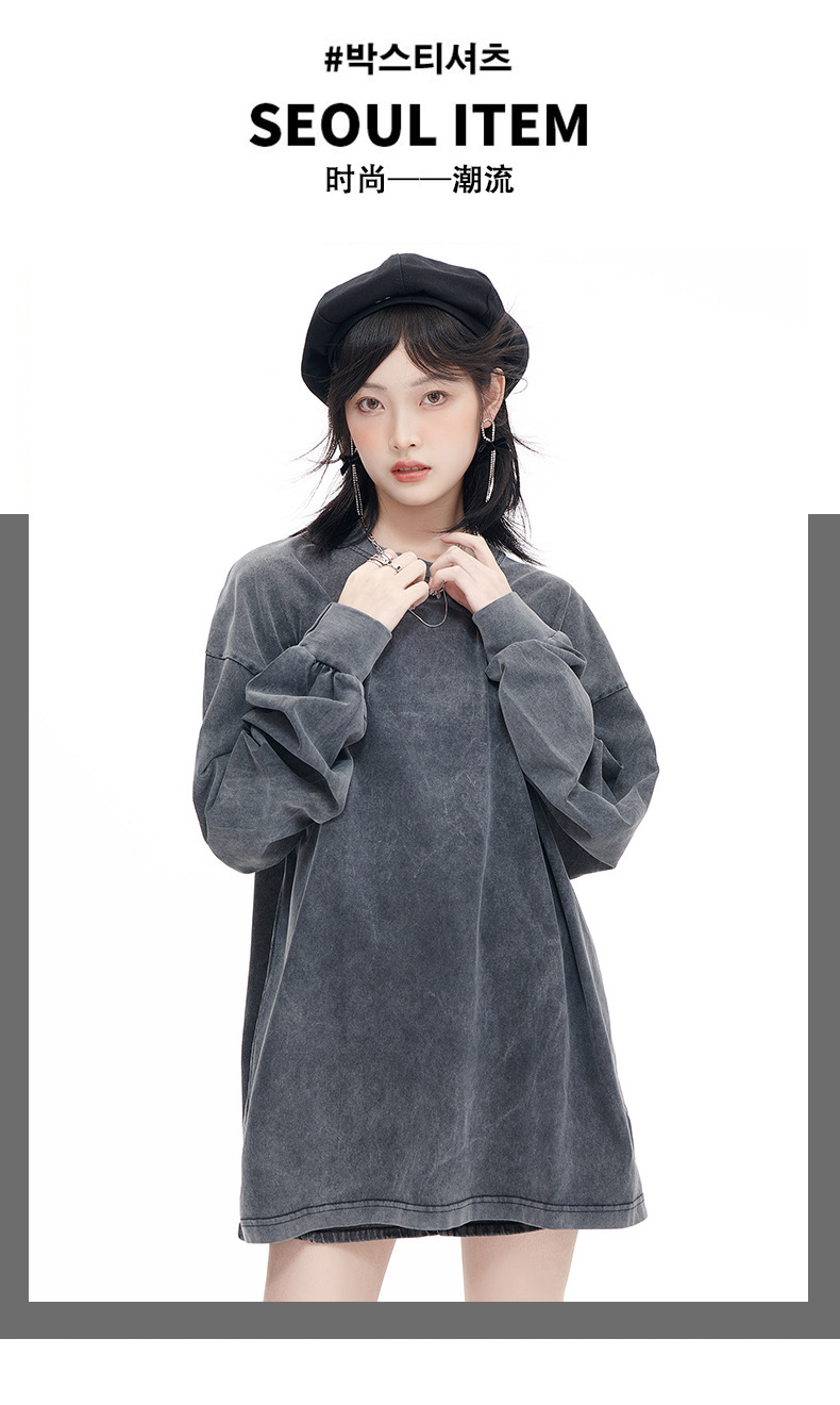 워싱 처리된 빈티지 스타일 긴팔 티셔츠 남녀공용 오버사이즈 드롭숄더 루즈핏 티셔츠 프린트 로고스토어 가기