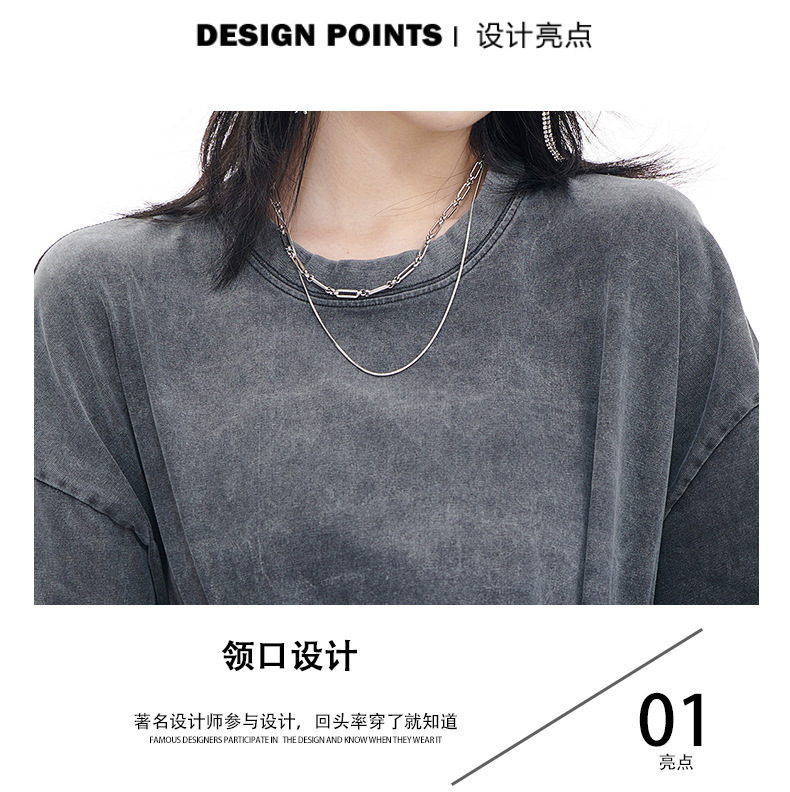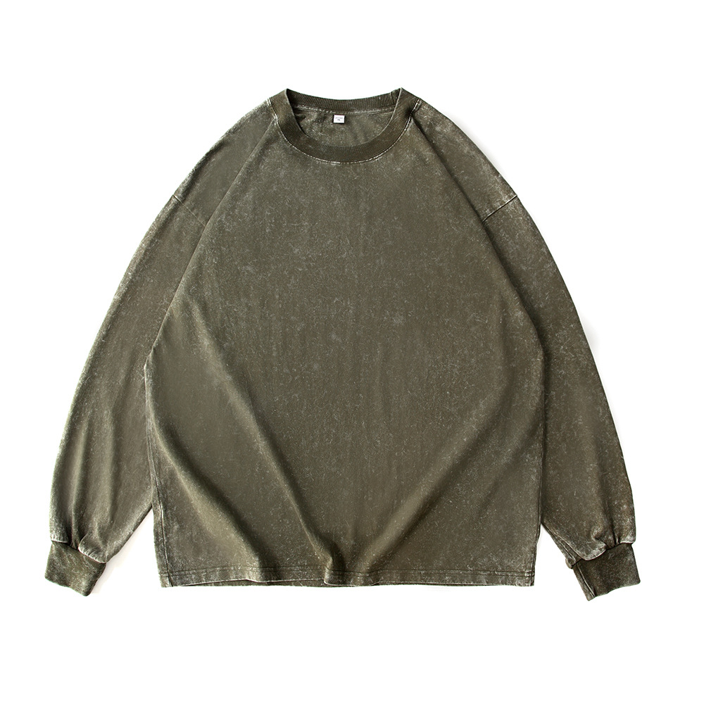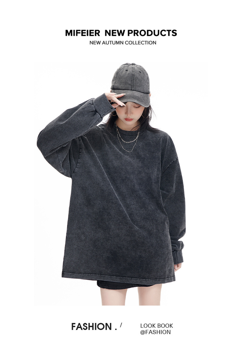 워싱 처리된 빈티지 스타일 긴팔 티셔츠 남녀공용 오버사이즈 드롭숄더 루즈핏 티셔츠 프린트 로고
