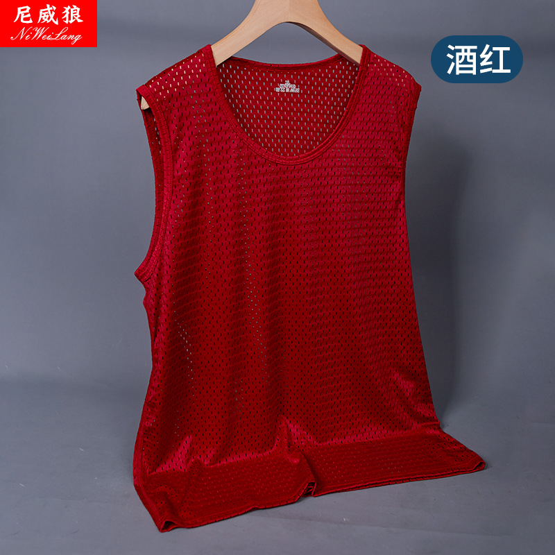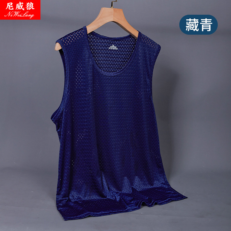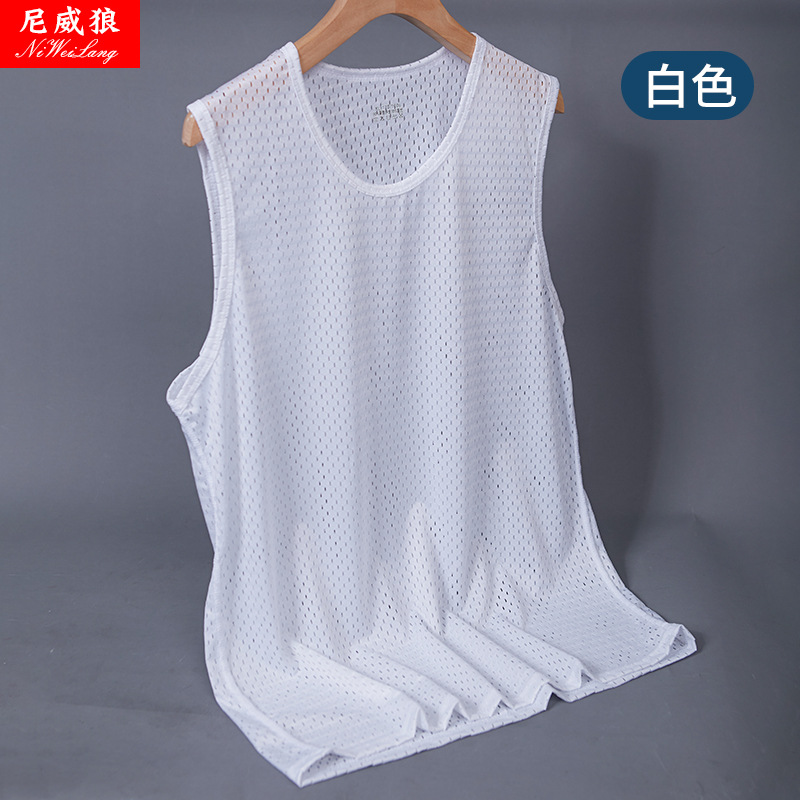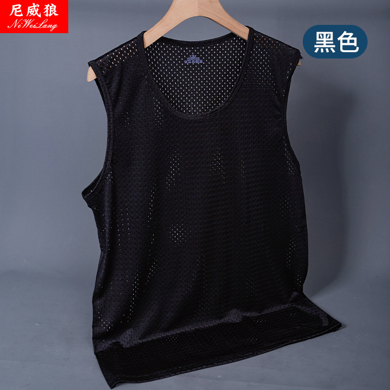 Niwei 늑대 남자의 넓은 어깨 큰 메쉬 조끼 아이스 실크 조끼 라운드 넥 통기성 추적 스포츠 민소매 조끼 사용자 정의스토어 가기
