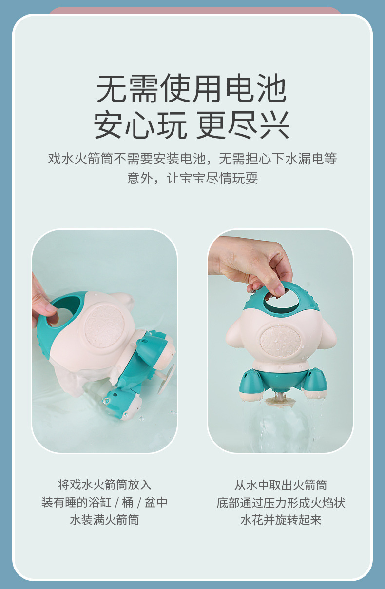 크로스 보더 어린이 아기 목욕 장난감 로켓 분수 회전 뿌리는 물 놀이 물 스프레이 세척 머리 아기 장난감스토어 가기