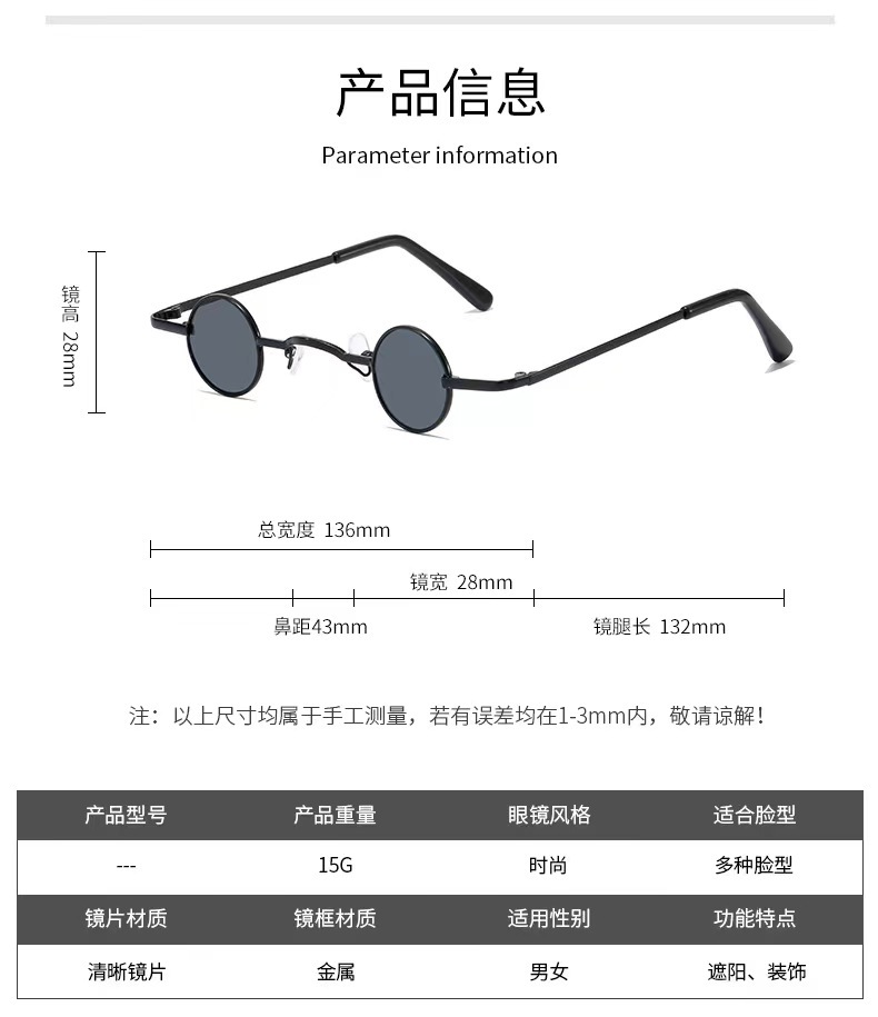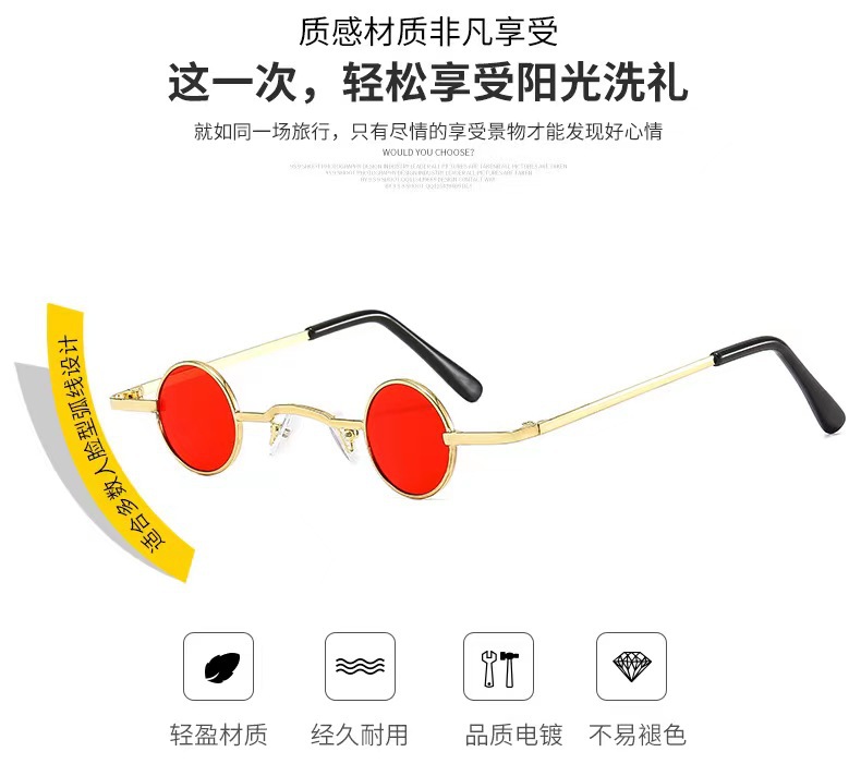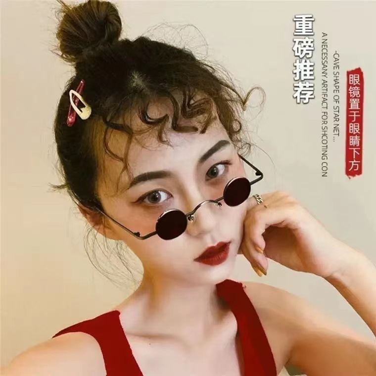틱톡 인플루언서 미니 안경 펑크풍 원형 레트로 초소형 프레임 선글라스 남녀공용 힙합 재미있는 선글라스