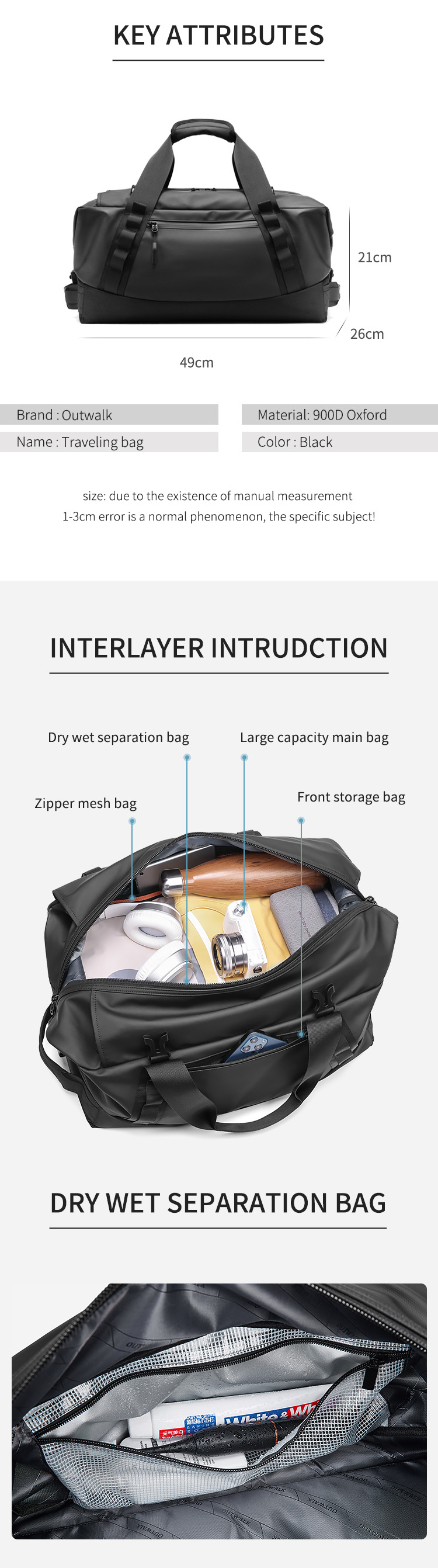고가의 단거리 여행 가방 방수 아웃도어 수하물 가방 다기능 스포츠 피트니스 가방 휴대용 메신저 가방