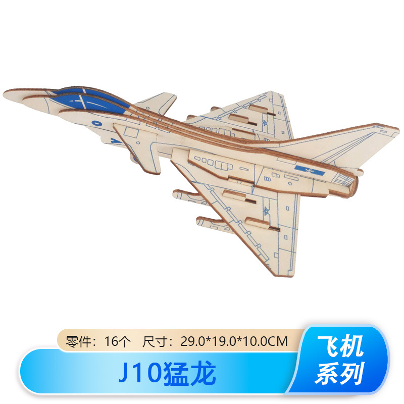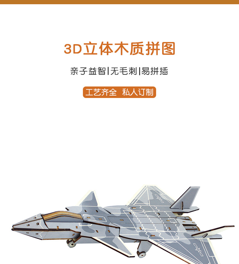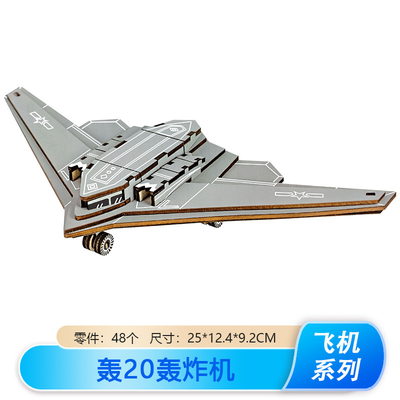 새로운 J-20 전투기 모델 나무 비행기 장식품 나무 3 차원 퍼즐 소년 DIY 장난감스토어 가기