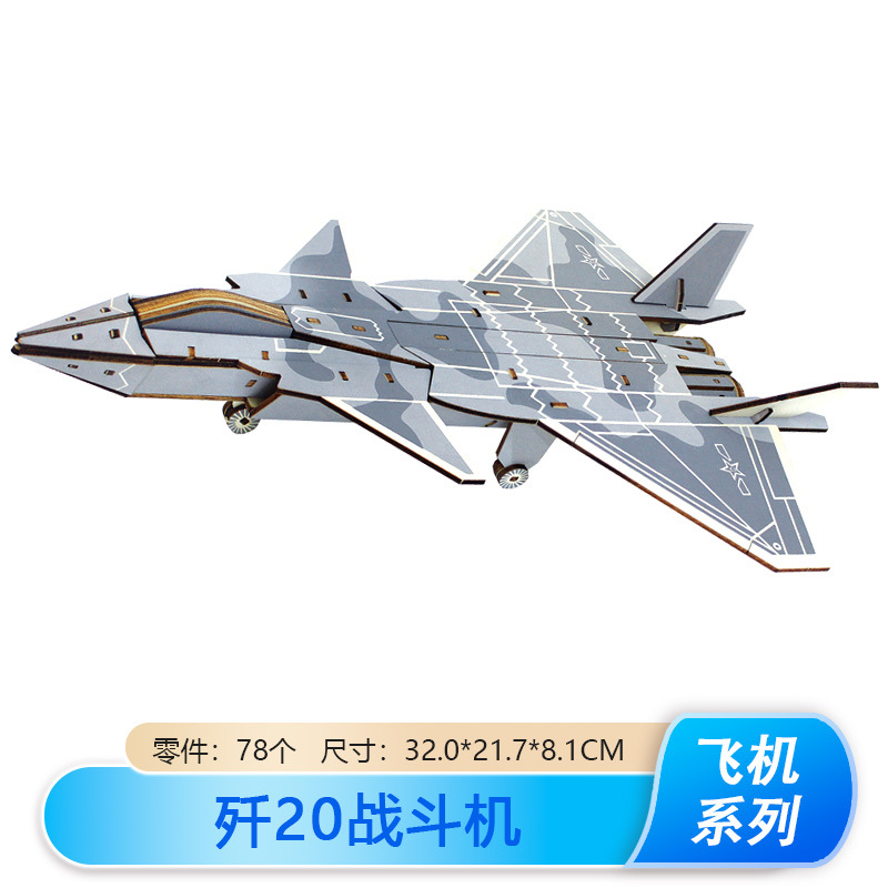 새로운 J-20 전투기 모델 나무 비행기 장식품 나무 3 차원 퍼즐 소년 DIY 장난감