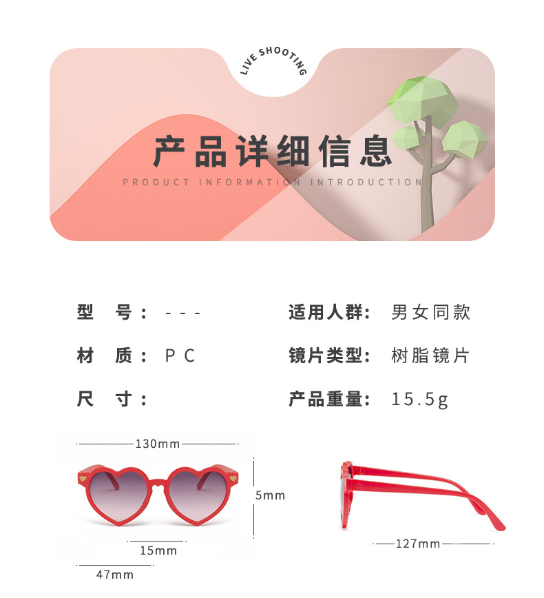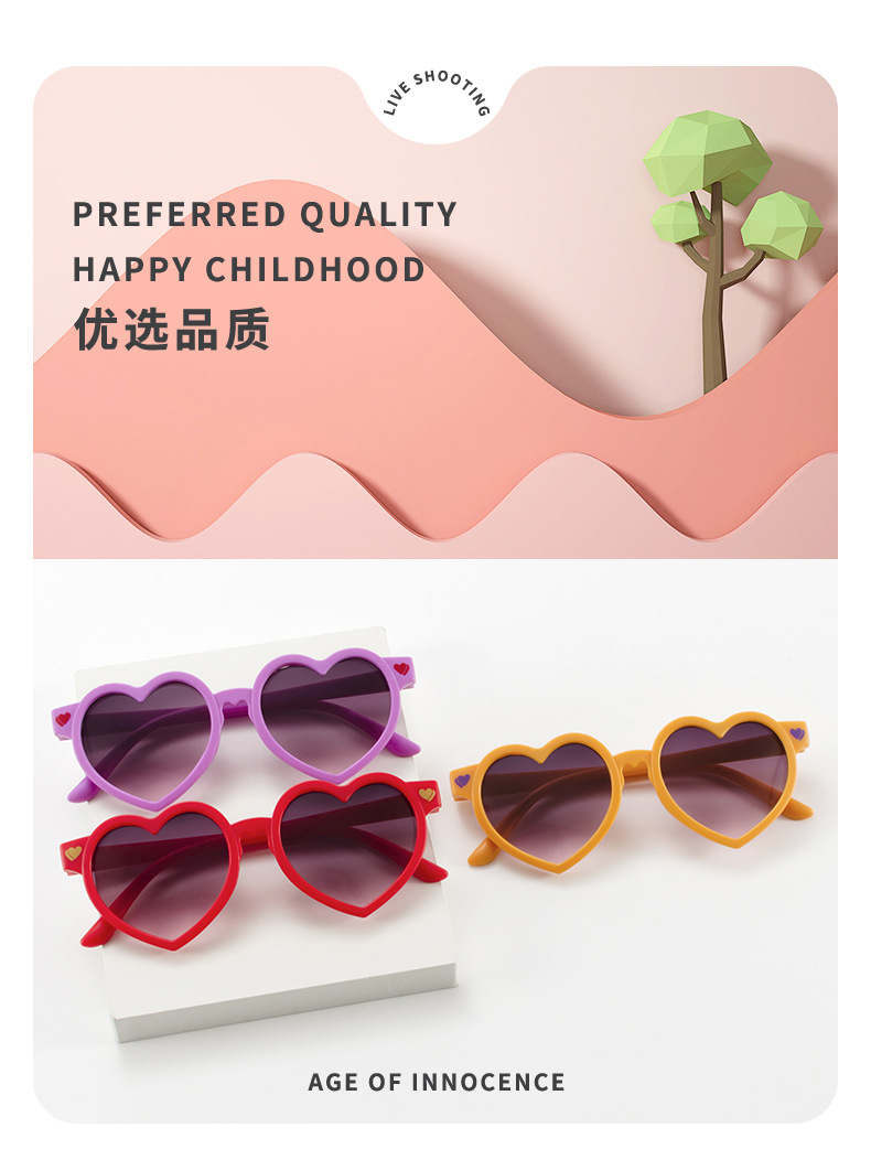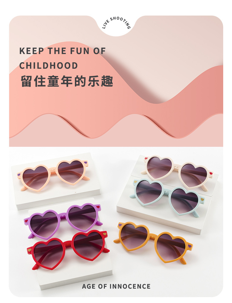 국경 간 사랑 어린이 선글라스 패션 캔디 컬러 하트 모양의 어린이 파티 안경 새로운 어린이 선글라스 도매스토어 가기
