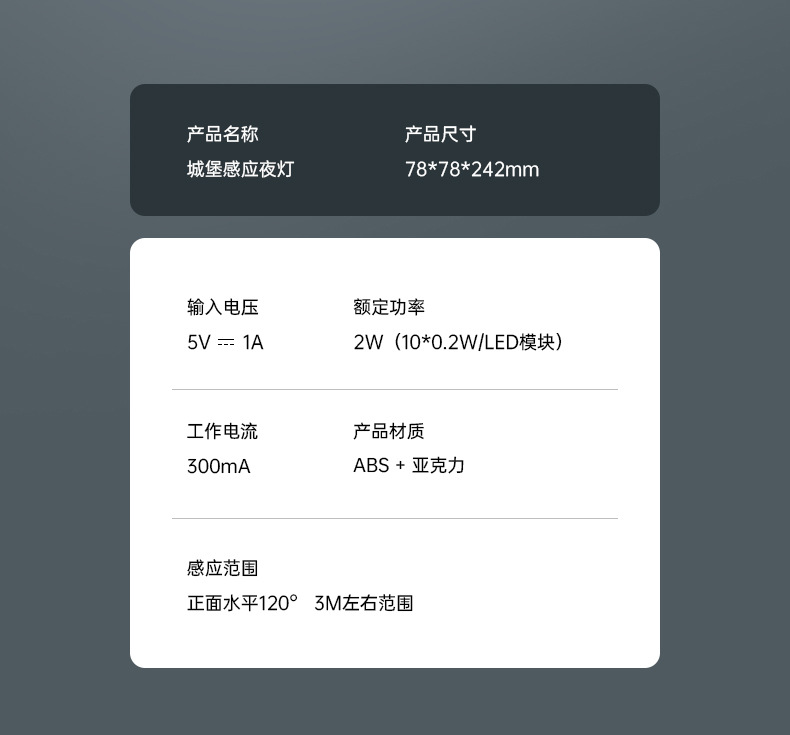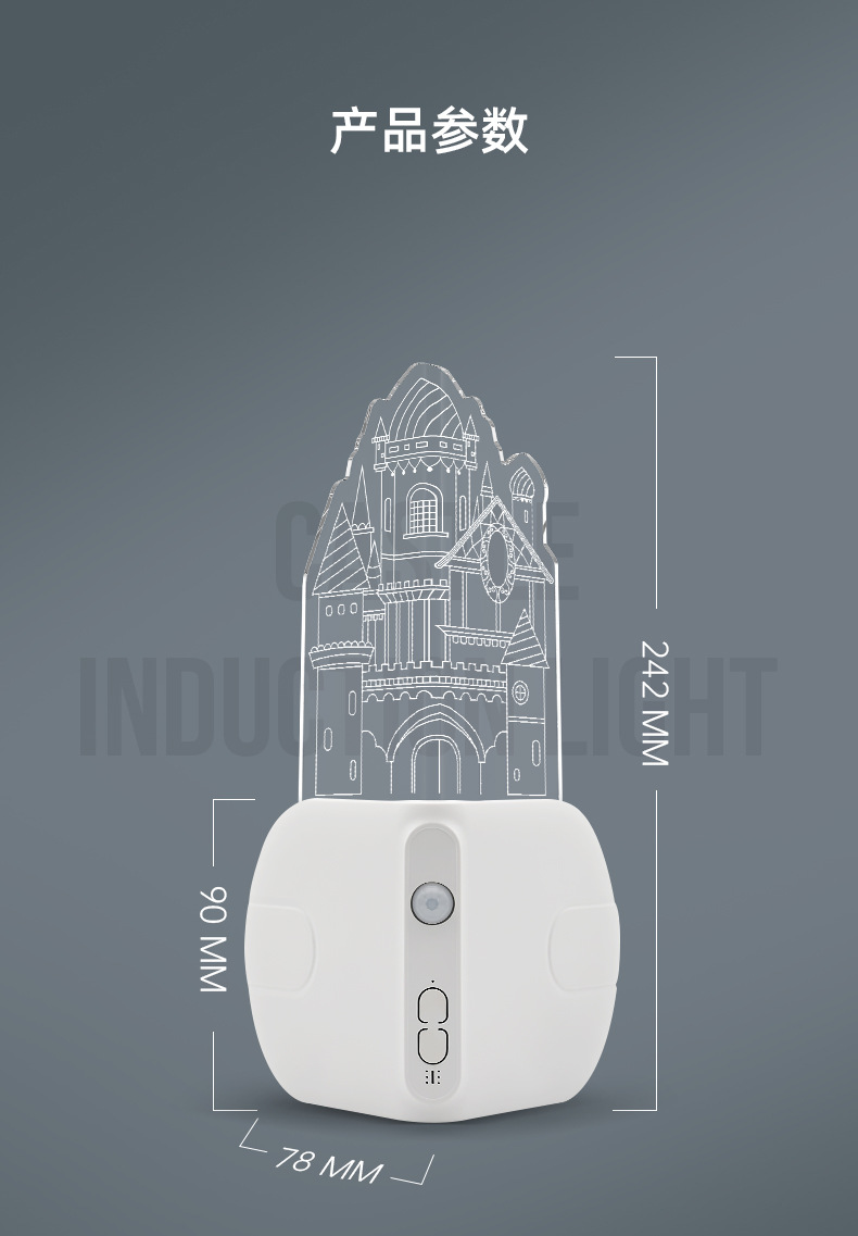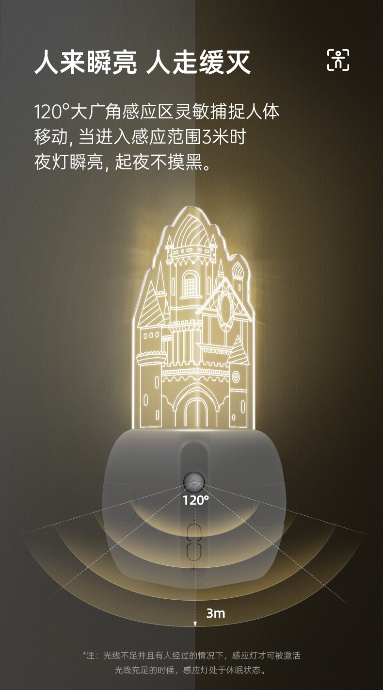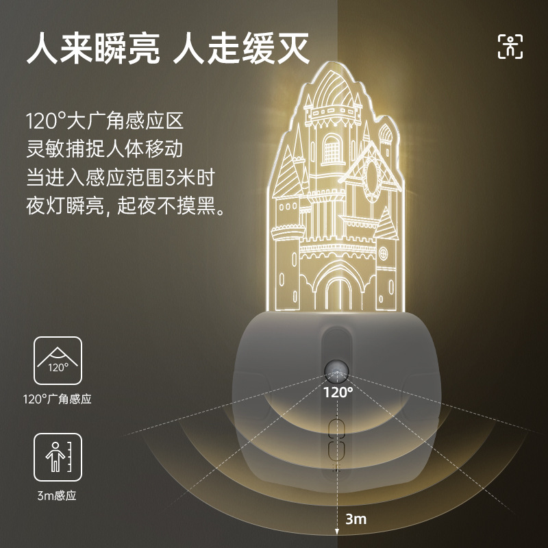 아크릴 성 모양 센서 야간등, 스마트 센서 코너 램프, 복도/통로 야간 분위기 조명, 선물용 야간등스토어 가기