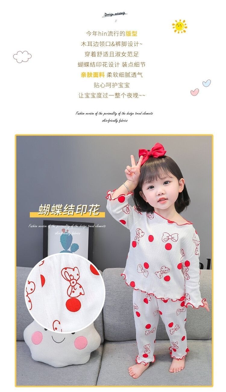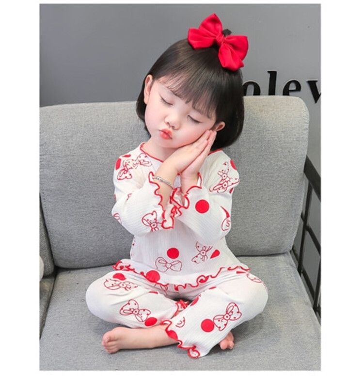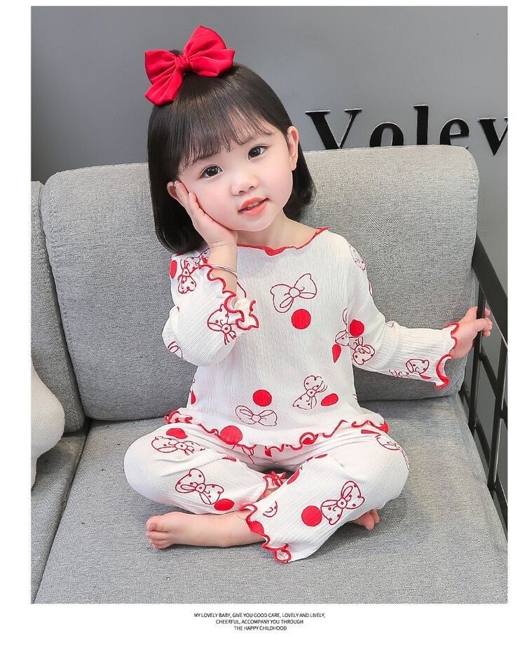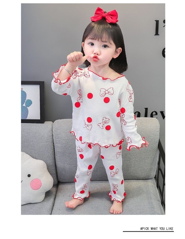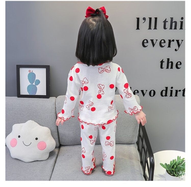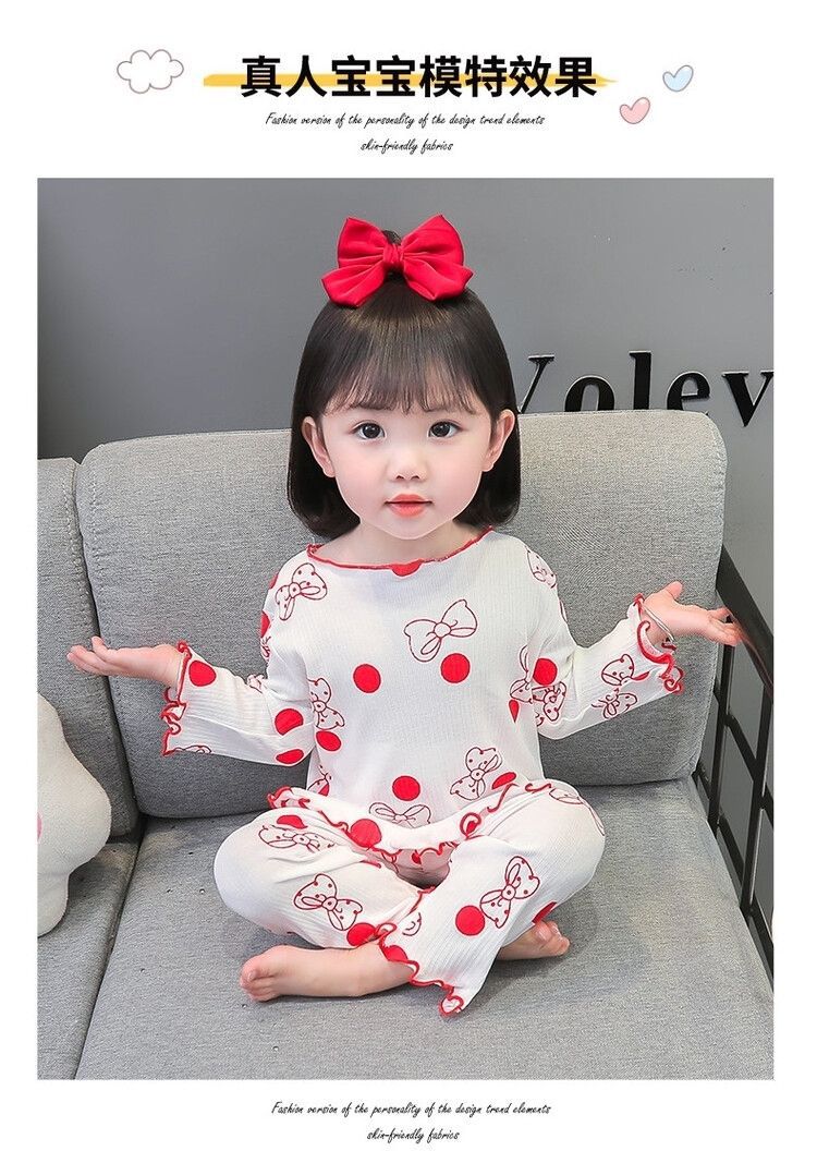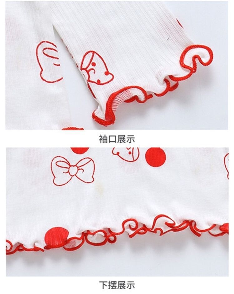 봄과 가을 아이들의 새로운 귀 모양 인쇄 세트 여성 아기 한국식 편안한 귀여운 가정 옷 투피스 잠옷스토어 가기
