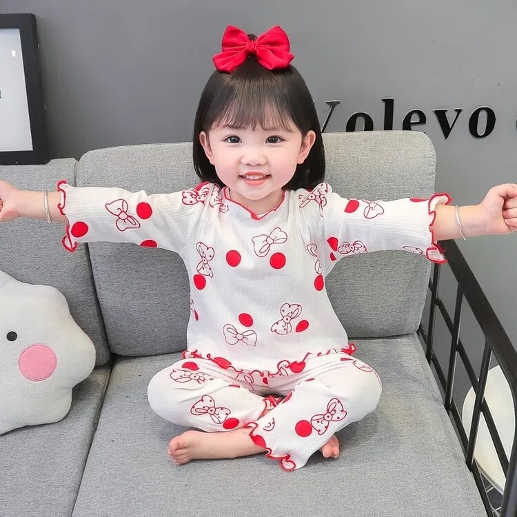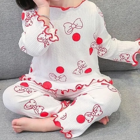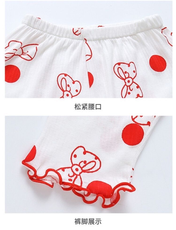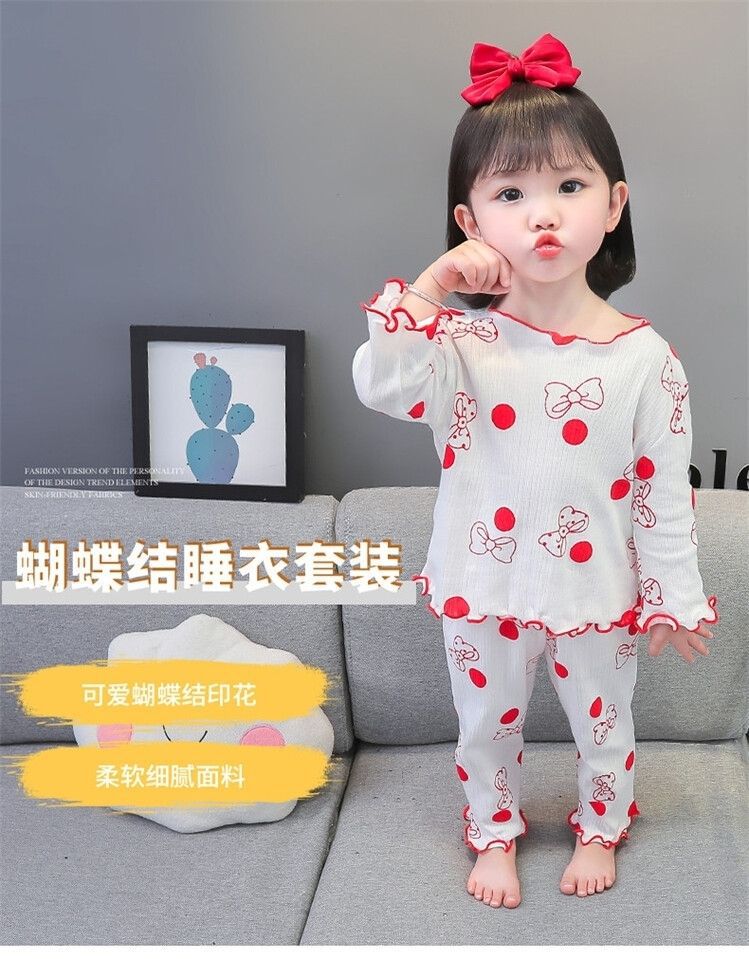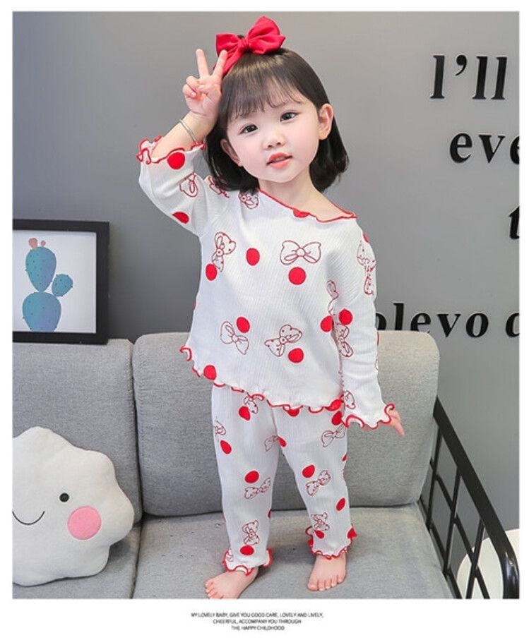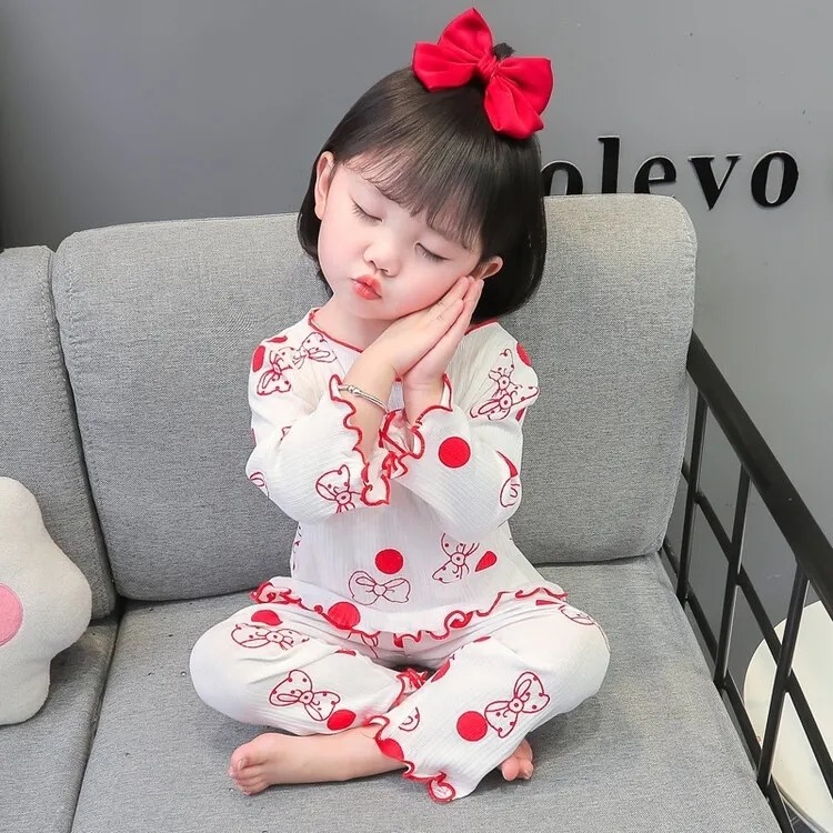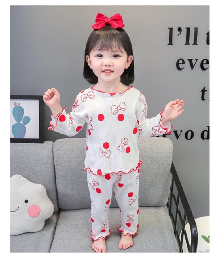 봄과 가을 아이들의 새로운 귀 모양 인쇄 세트 여성 아기 한국식 편안한 귀여운 가정 옷 투피스 잠옷스토어 가기