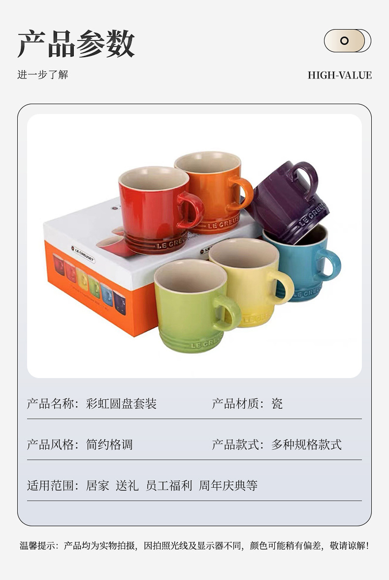 쿨 컬러 LE CREUSET 레인보우 머그 마카롱 6 종 세트 세라믹 컵 식기 세트 조합 가정스토어 가기