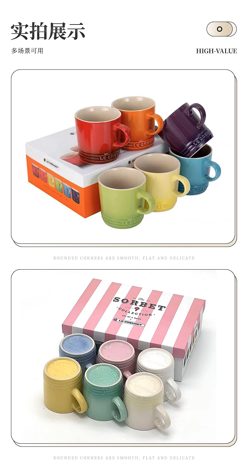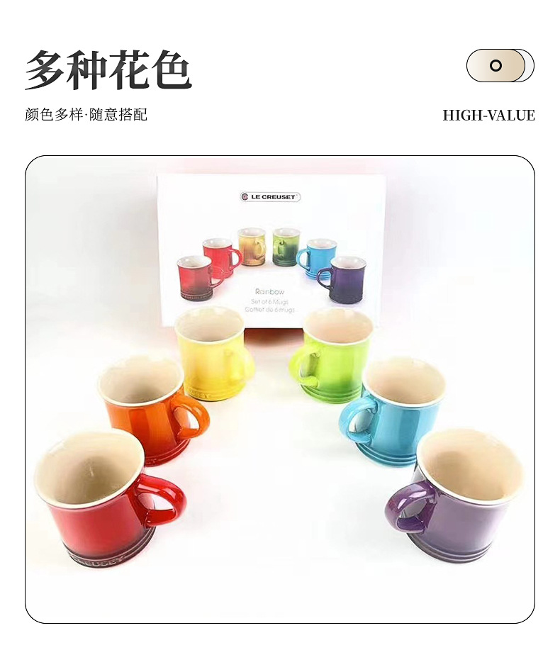 쿨 컬러 LE CREUSET 레인보우 머그 마카롱 6 종 세트 세라믹 컵 식기 세트 조합 가정