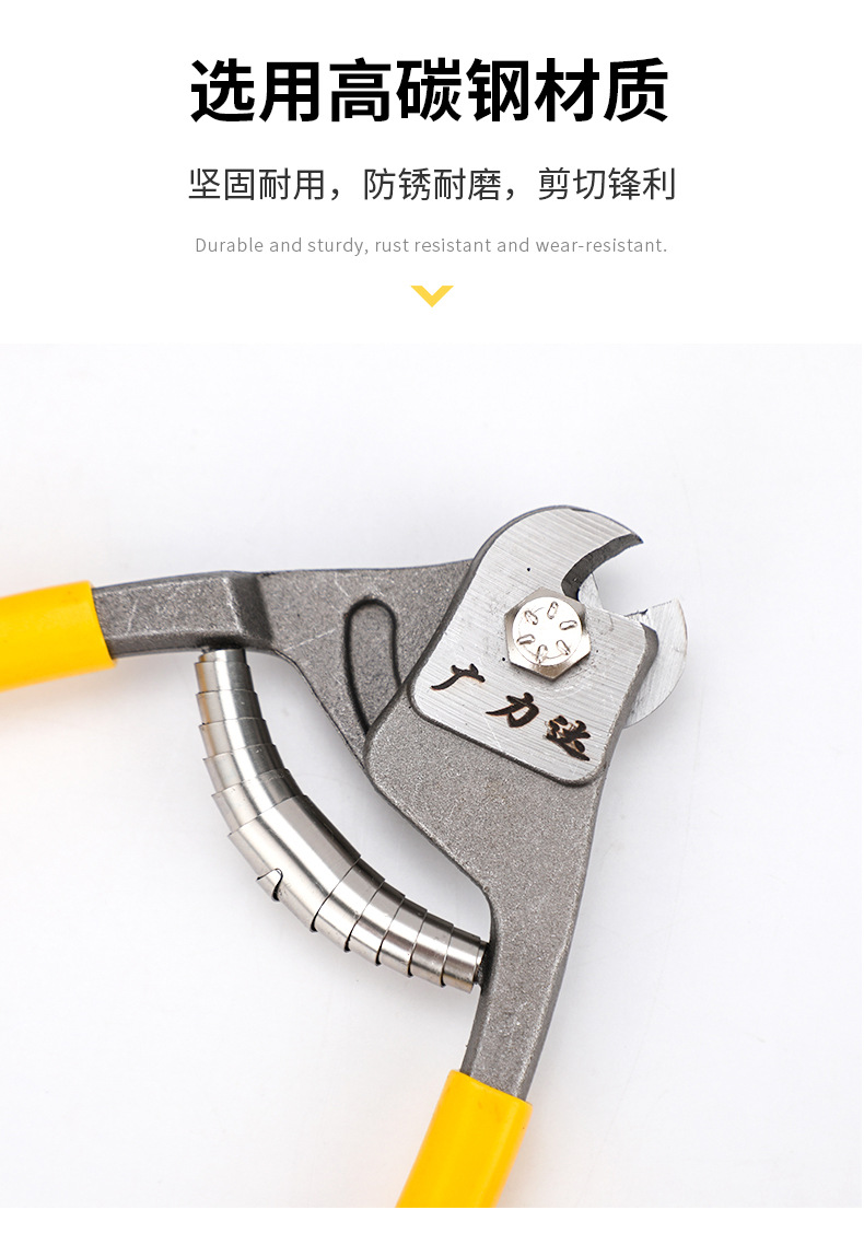 徐州广智金属工具制造有限公司是电缆剪、工业剪刀、剥线钳、金属工具等产品专业生产加工的公司,拥有完整、科学的质量管理体系。徐州广智金属工具制造有限公司的诚信、实力和产品质量获得业界的认可。公司一直以服务专业、顾客满意为经营宗旨,以求仁为大、求利为小、真正为人民服务的经营理念,开拓进取,务实创新,在做好经营的基础上,还以打造地方特色品牌为己任。在多年的经营中,坚持培养高素质员工,不断优化生产技术,用品质和服务让客户回头的经营原则;实行品质为先、快速加工,依靠专业能力获取公平回报的经营策略。坚持快速销售、合理定价,要求销售人员与客户心对心联络、面对面交流。同时,公司坚持规范经营,不追求高利润率,坚守价值底线、拒绝利益诱惑,坚持以专业能力从市场获取公平回报,是获得成功的基石。欢迎各界朋友莅临参观、指导和业务洽谈。