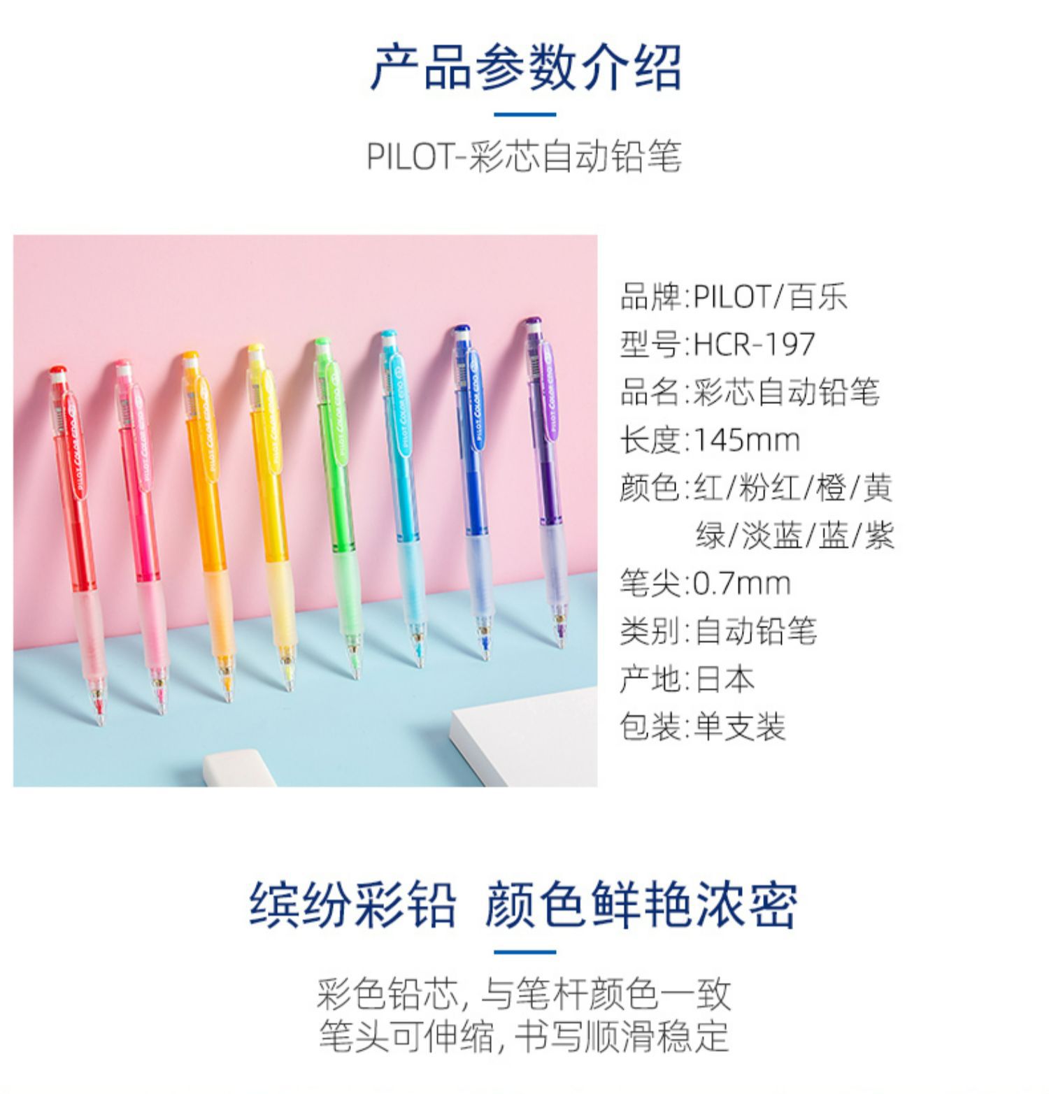 일본 PILOT Baile HCR-197 학생 그리기 브러시 컬러 기계 연필 0.7mm 활성 연필 색상 값