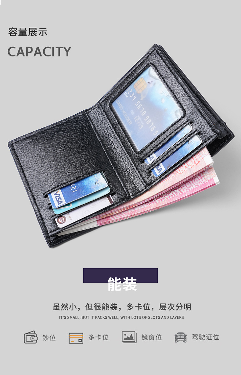 많은 재고 PU 플러스 와이 세로 남성 지갑 심플 캐주얼 남성 동전 지갑 남성용 짧은 지갑스토어 가기
