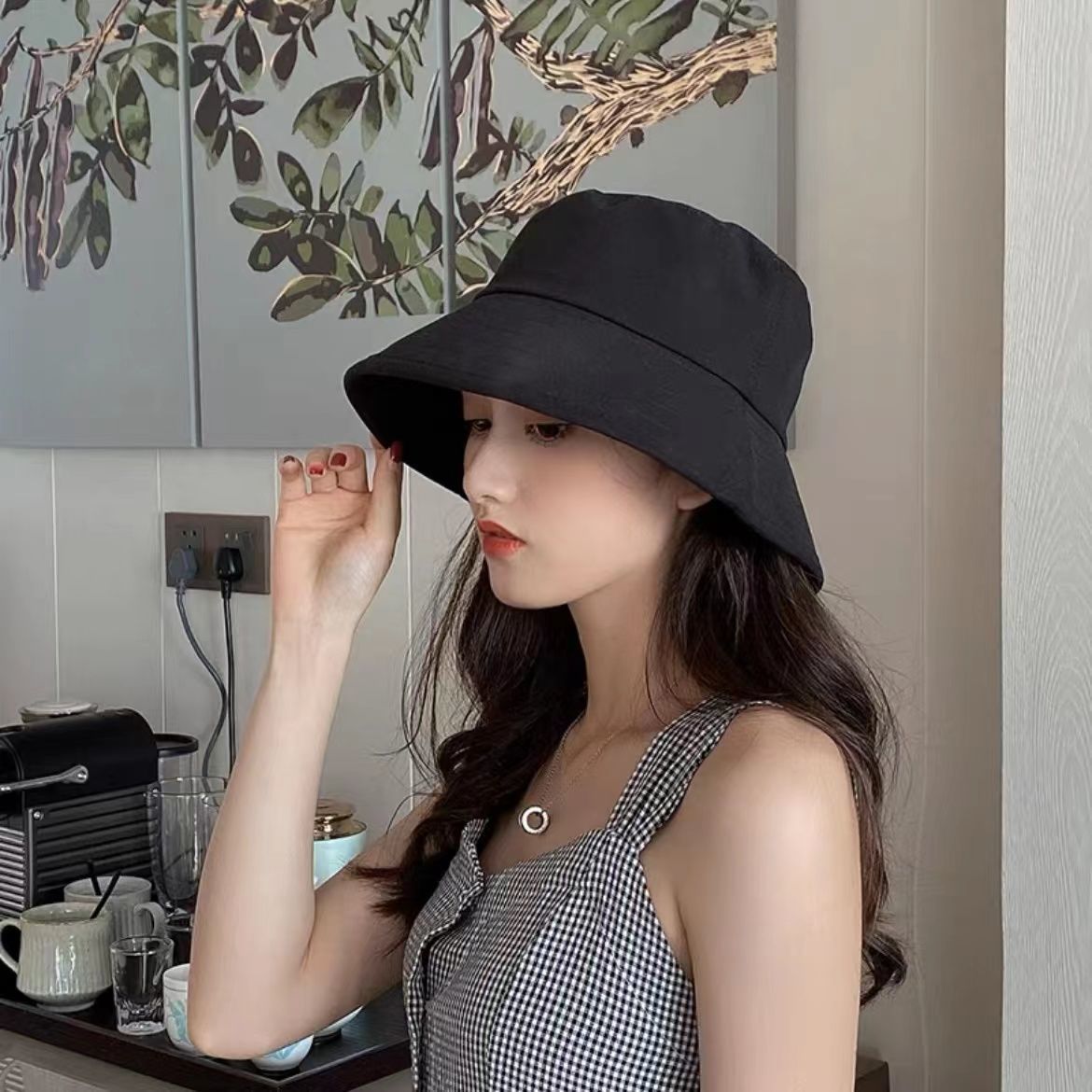 2025 봄 여름 신작 여성용 어부 모자 한국 스타일 트렌디 일본식 단색 분지 모자 남성용 및 여성용 자외선 차단 모자스토어 가기