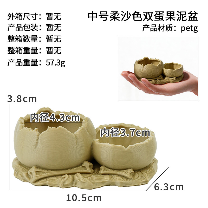 • 중간 사이즈 부드러운 모래색 더블 에그 과일 퓌레 볼