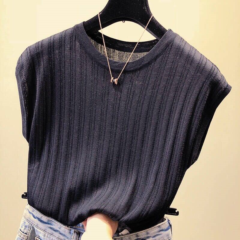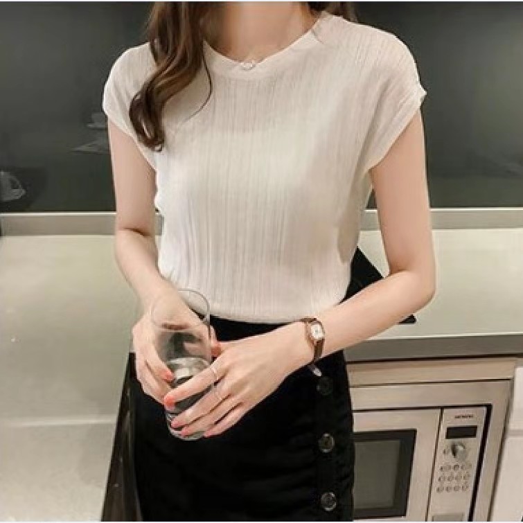 2024 봄 여름 루즈핏 슬리밍 여름 솔리드 컬러 라운드넥 반팔 티셔츠 여성용 큰 사이즈 니트 탑 여성용 베이스 레이어스토어 가기