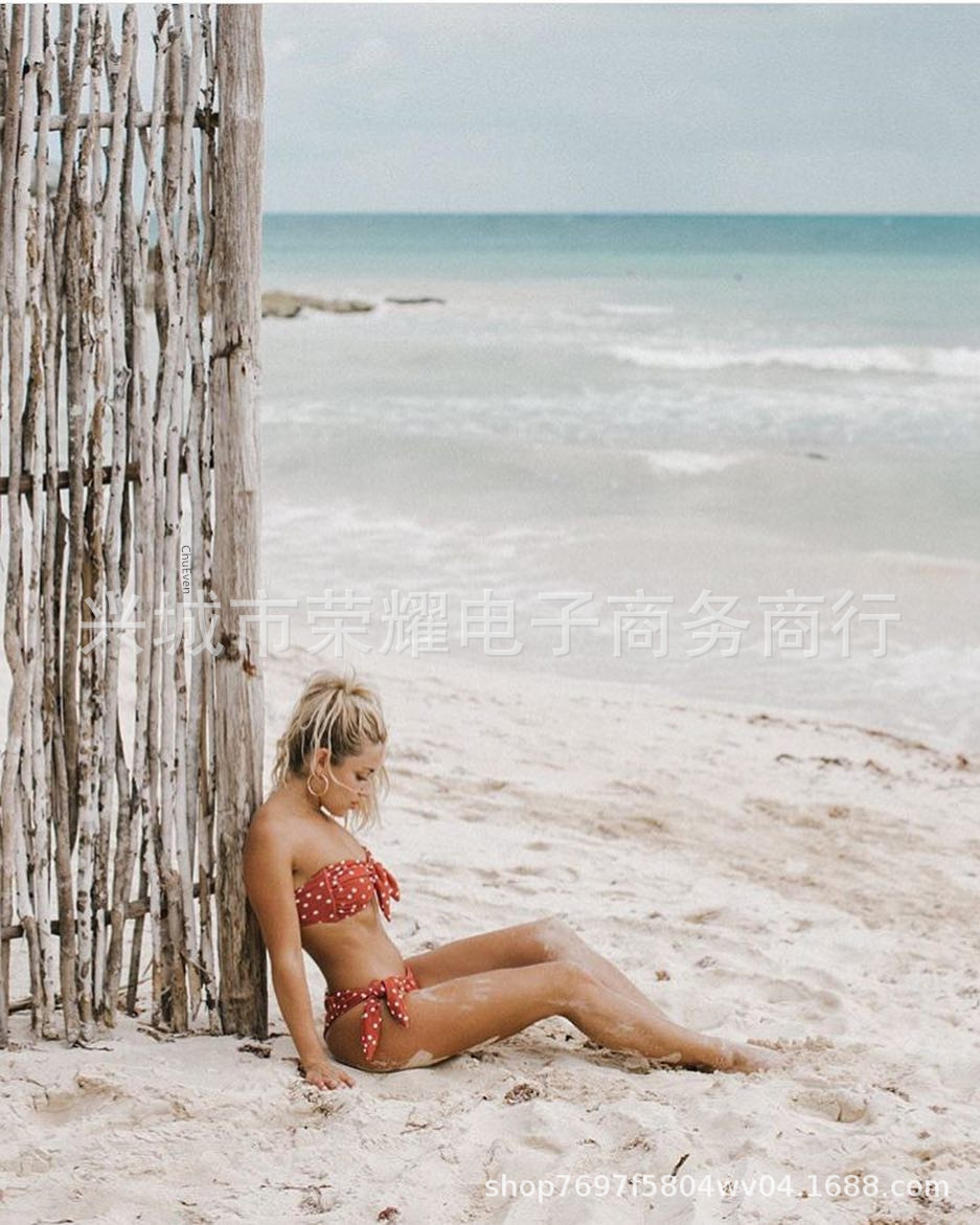 비키니 2020 대외 무역 여성 수영복 AliExpress 물방울 무늬 프린트 섹시 비키니 스플릿 비키니