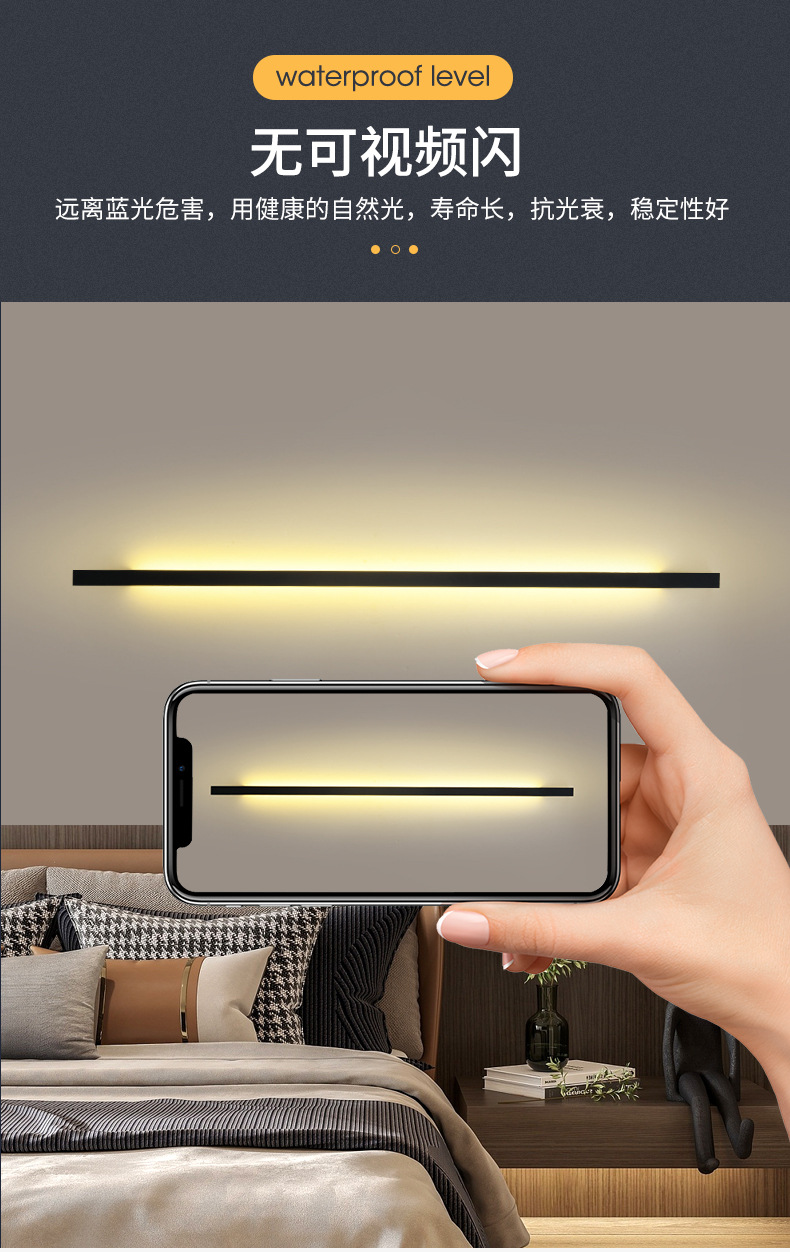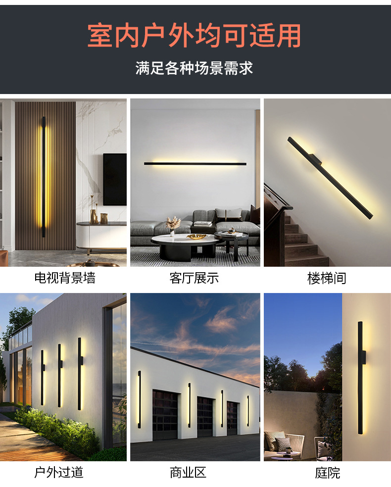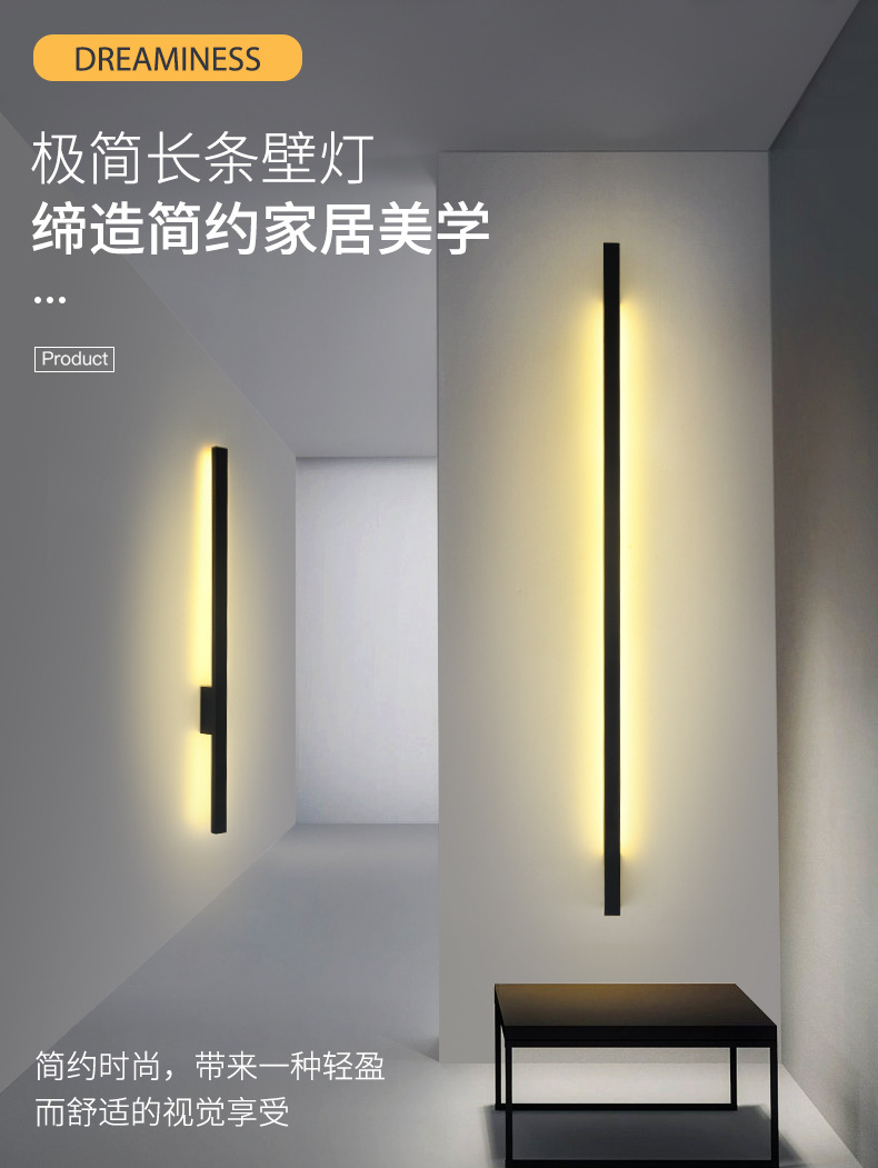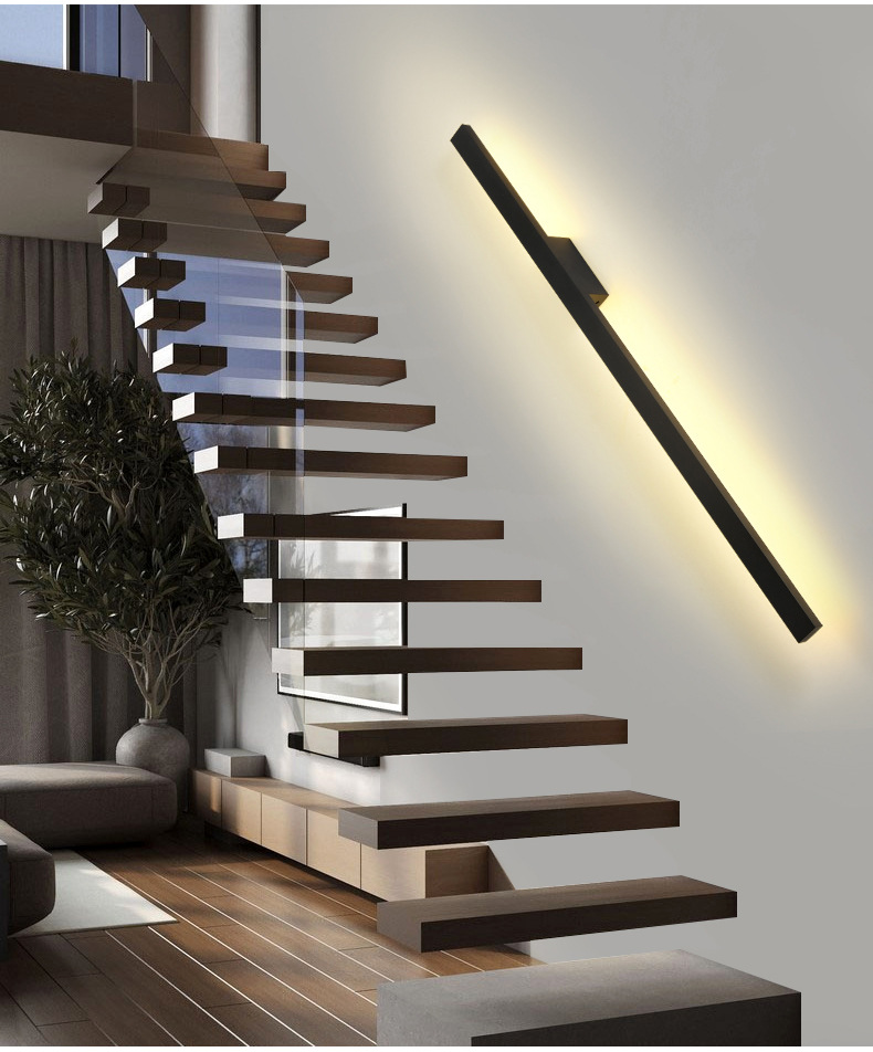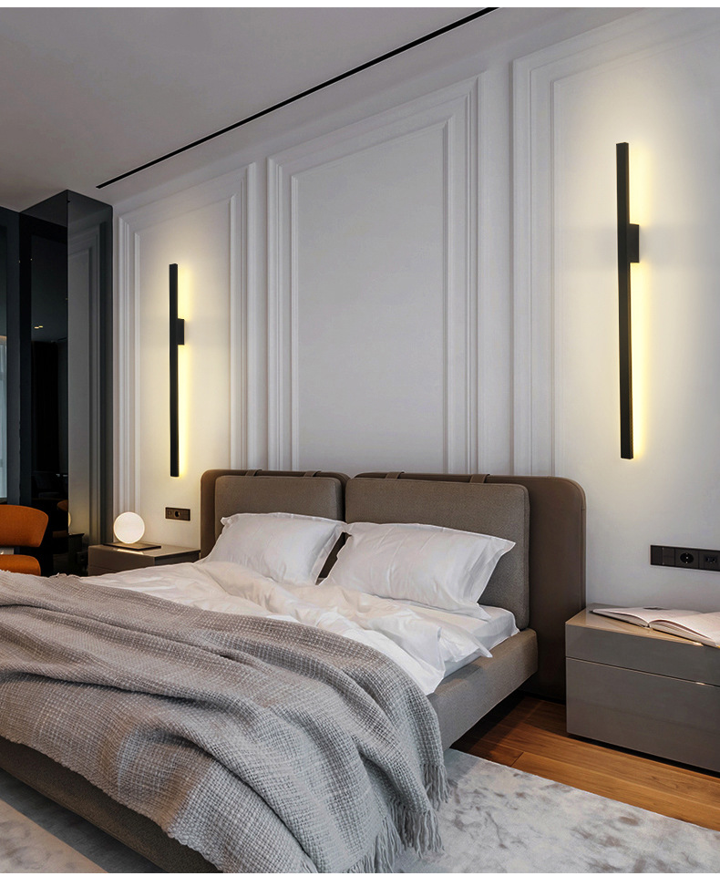 통합 알루미늄 소재] 미니멀리스트 라인 침대 옆 벽 램프 거실 침실 계단 통로 호텔 복도 장식 한 단어 램프