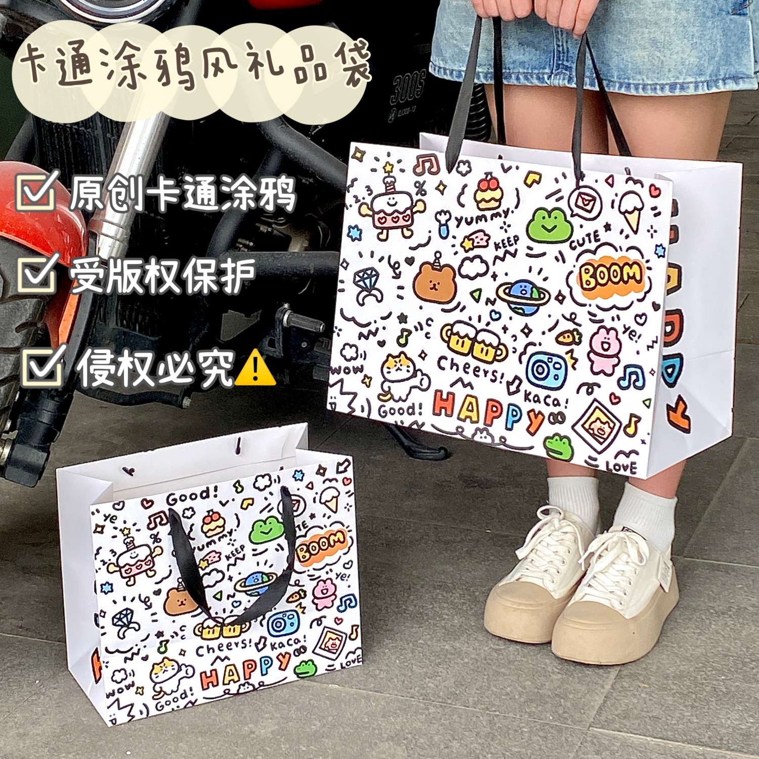 인스 만화 그래피티 선물 가방 생일 선물 포장 핸드백 종이 가방 귀엽고 창의적인 쇼핑백스토어 가기