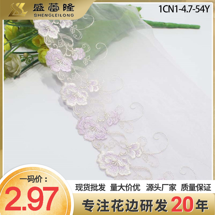 盛蕾隆紫色网纱精致单边花朵图案刺绣花边 窗帘内衣蕾丝花边辅料