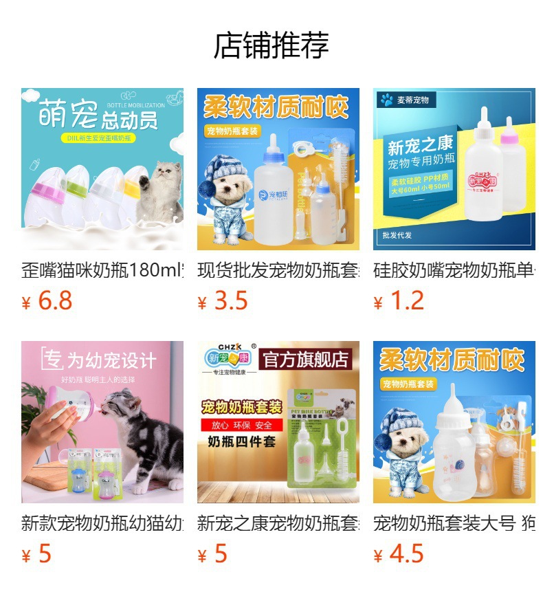공장 직배송 애완동물 젖병 세트, 강아지와 새끼 고양이를 위한 다양한 젖꼭지, 새끼 고양이 수유용, 식품 등급스토어 가기