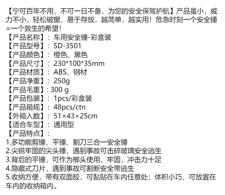 비상 안전 망치 다목적 차량 화재 윈도우 브레이커 탈출 인명 구조 자기 방어 깨진 유리 용품 자동차 용품스토어 가기