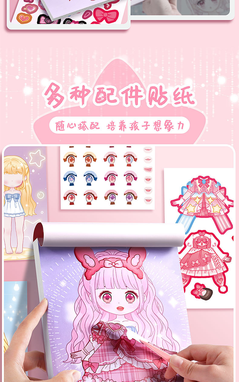 Kaba 곰 원피스 파티 스티커 여자 아이들의 귀여운 원피스 공주 장난감 스티커 핸드북 스티커 만화