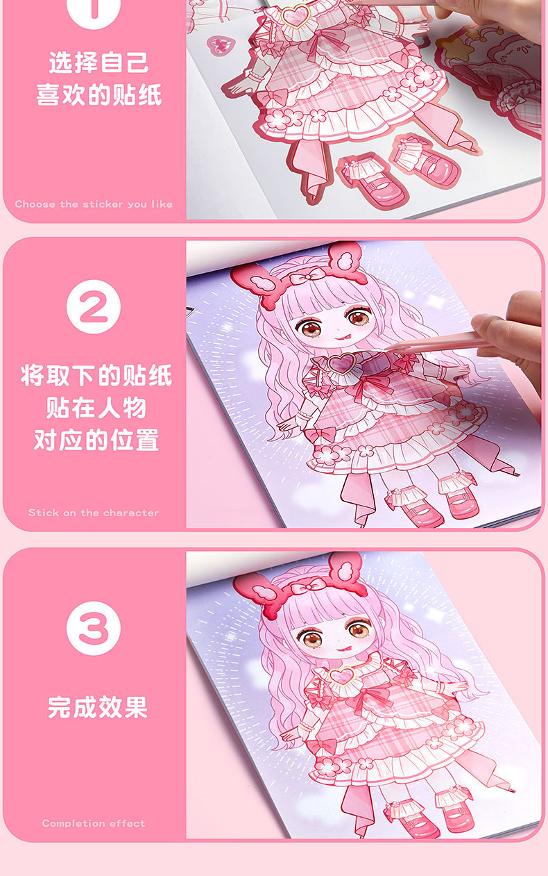 Kaba 곰 원피스 파티 스티커 여자 아이들의 귀여운 원피스 공주 장난감 스티커 핸드북 스티커 만화스토어 가기