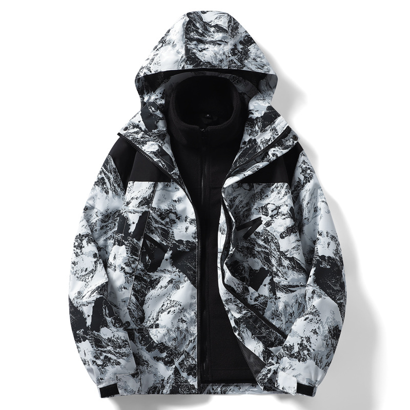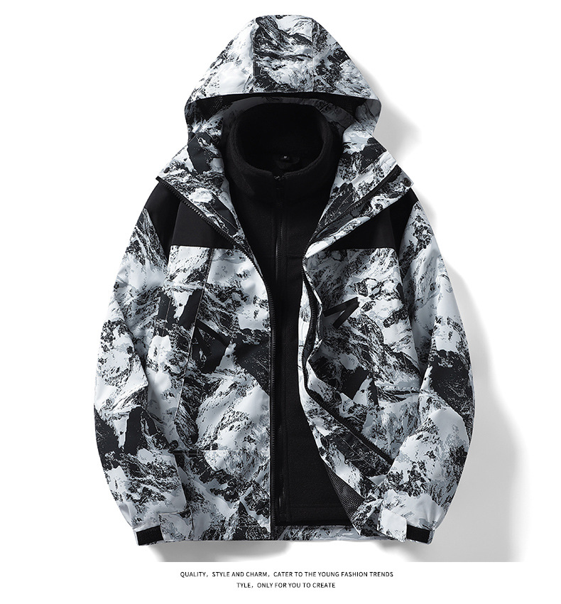 야외 러쉬 의류 여성의 패션 브랜드 한국 three-in-One 탈착식 재킷 가을과 겨울 기모 두꺼운 방풍 남성 스키 세트스토어 가기