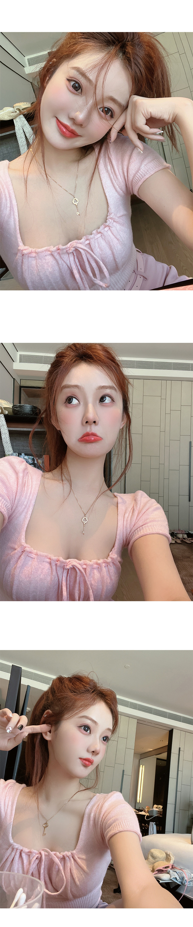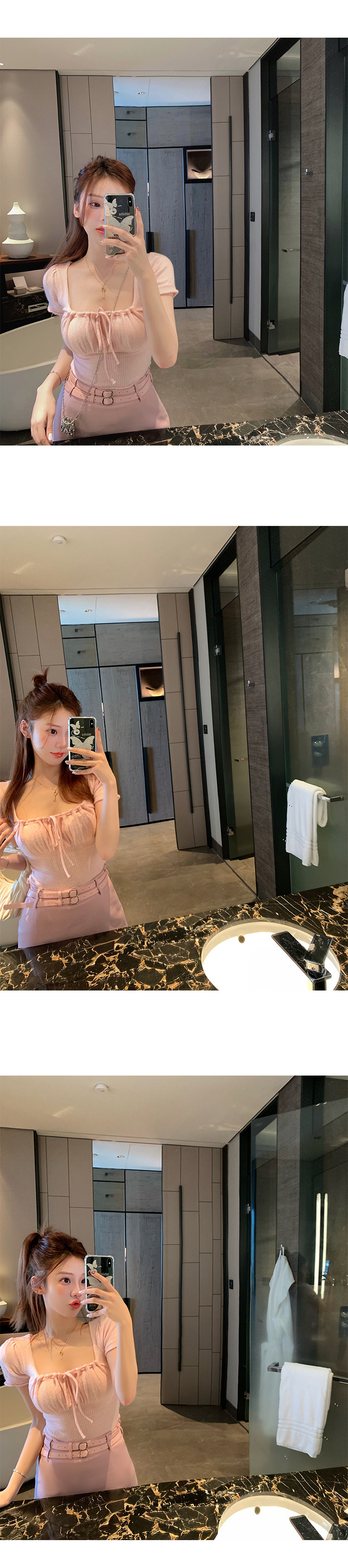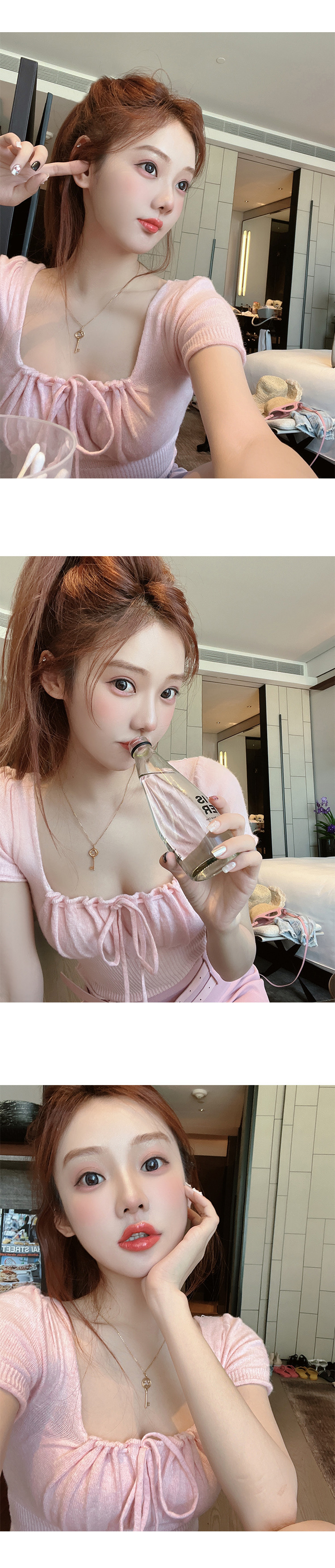 봄 한국식 퓨어 욕망 스퀘어 칼라 레이스업 디자인 짧은 스웨터 반팔 여성 상의스토어 가기