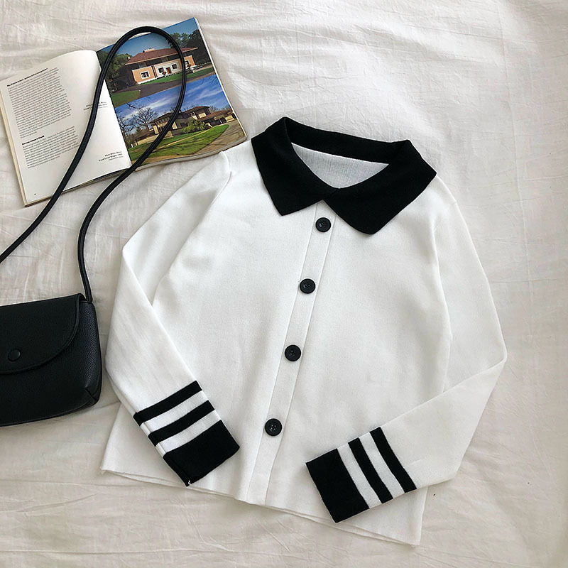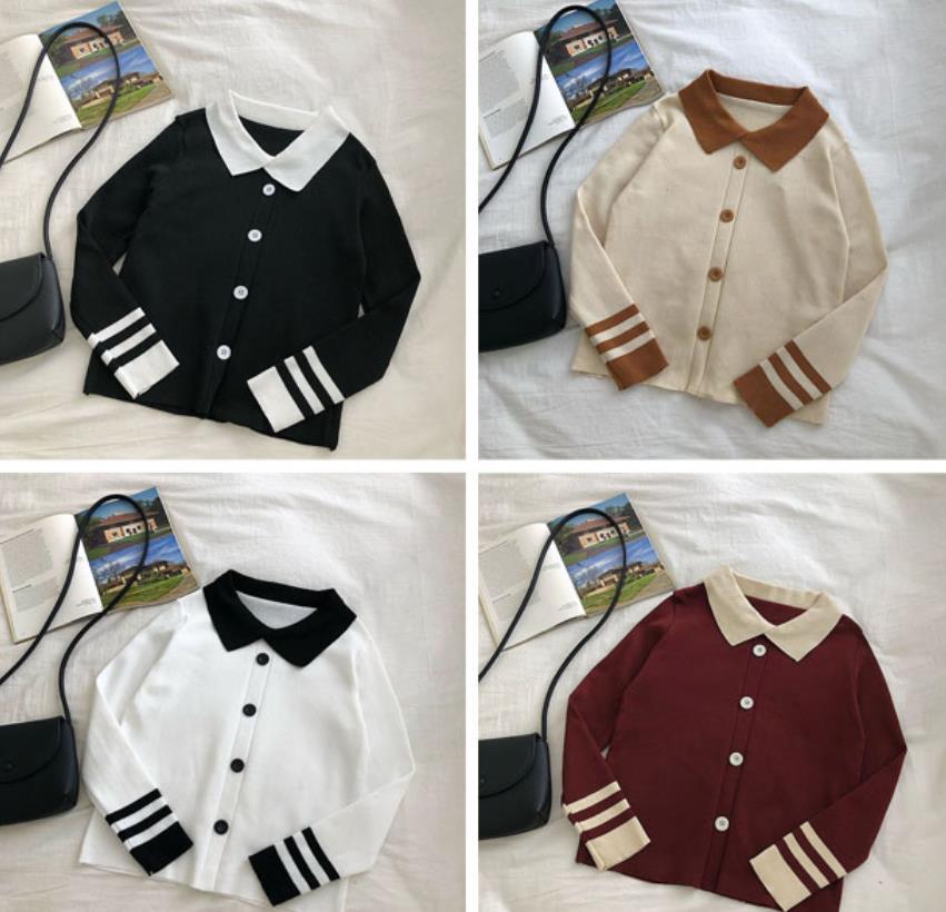 가을 겨울 2023 새로운 여성 한국식 슬림핏 슬림핏 컬러매칭 긴팔 니트 스웨터 인형 칼라 스웨터 짧은 유행스토어 가기