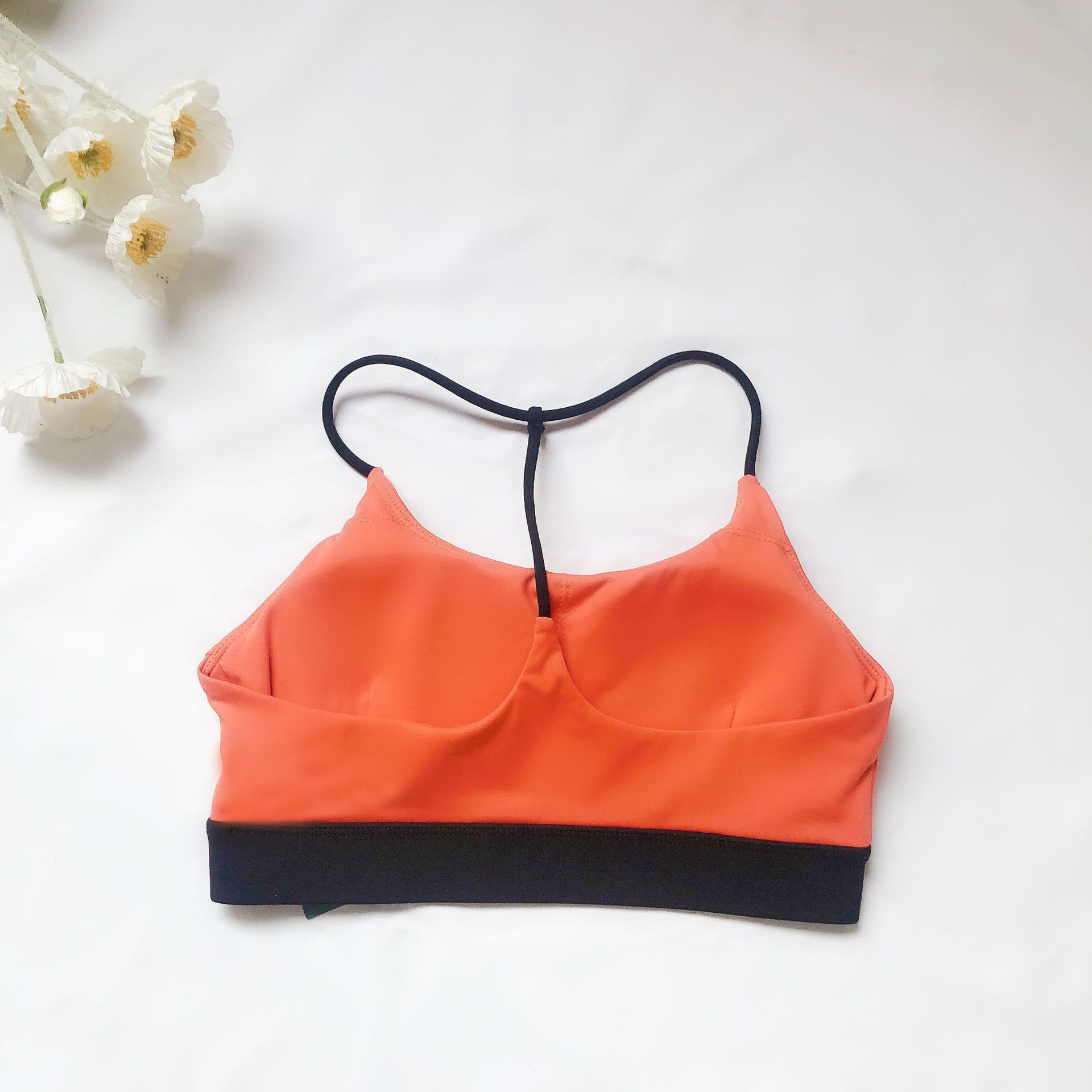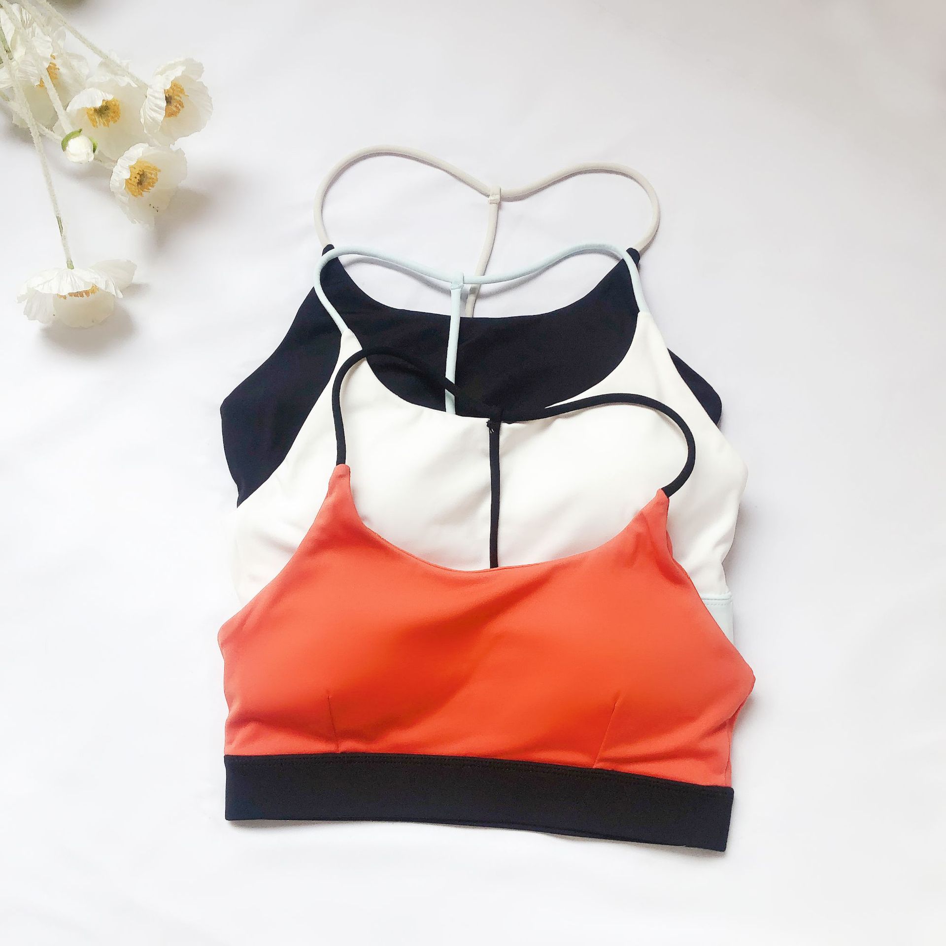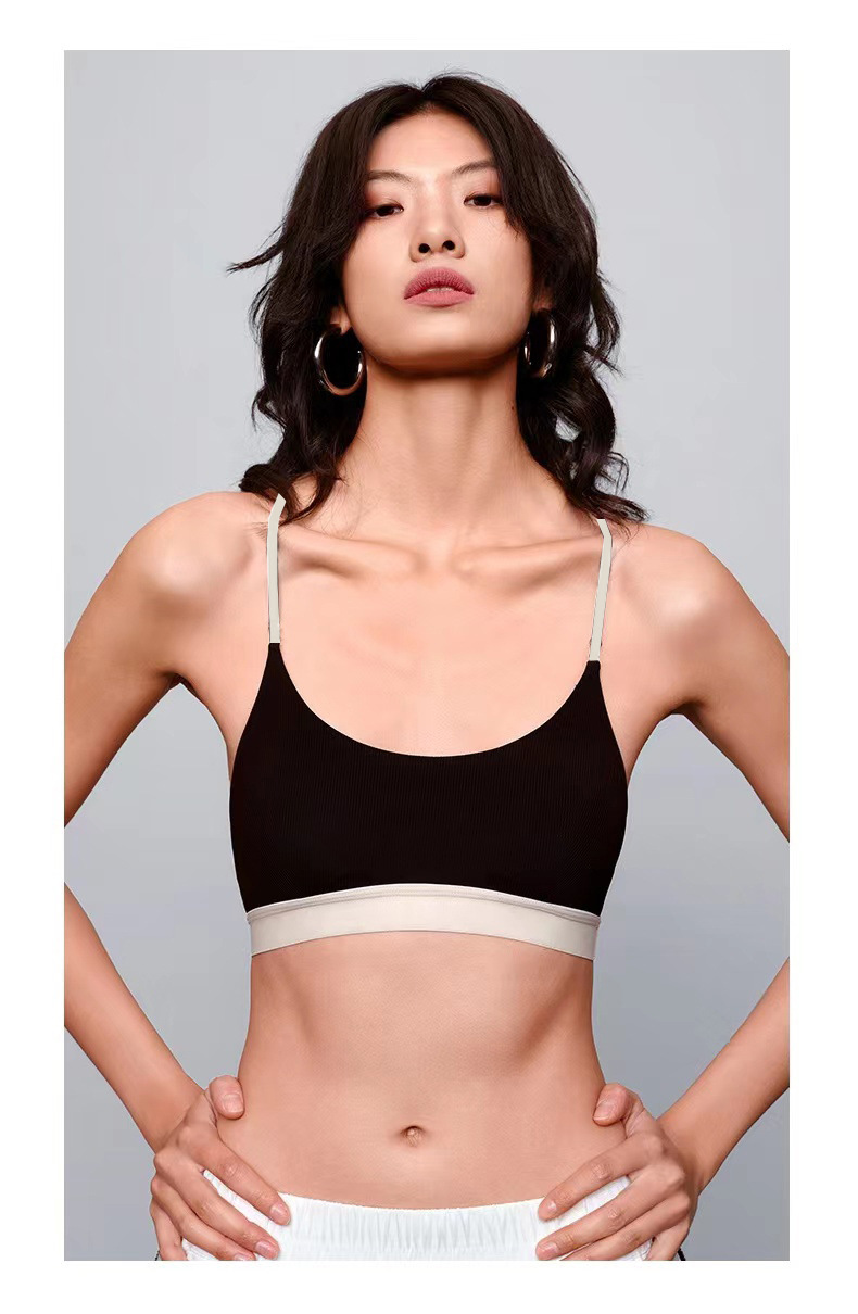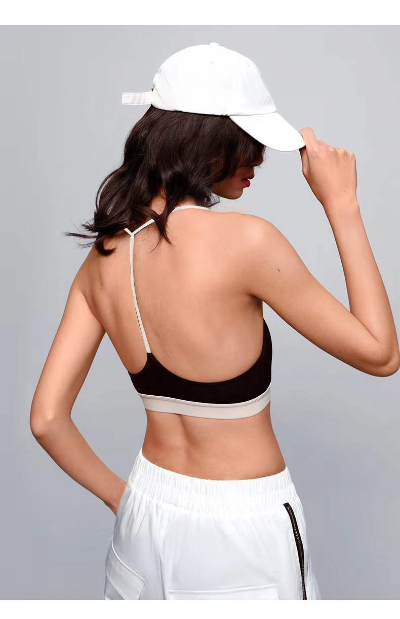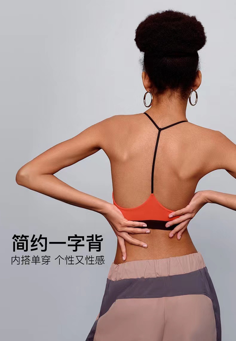 유럽과 미국의 대외 무역 스포츠 피트니스 브라 여성의 알몸 감각 아름다운 등 대비 색상 실행 요가 댄스 트레이닝 슬링 브라