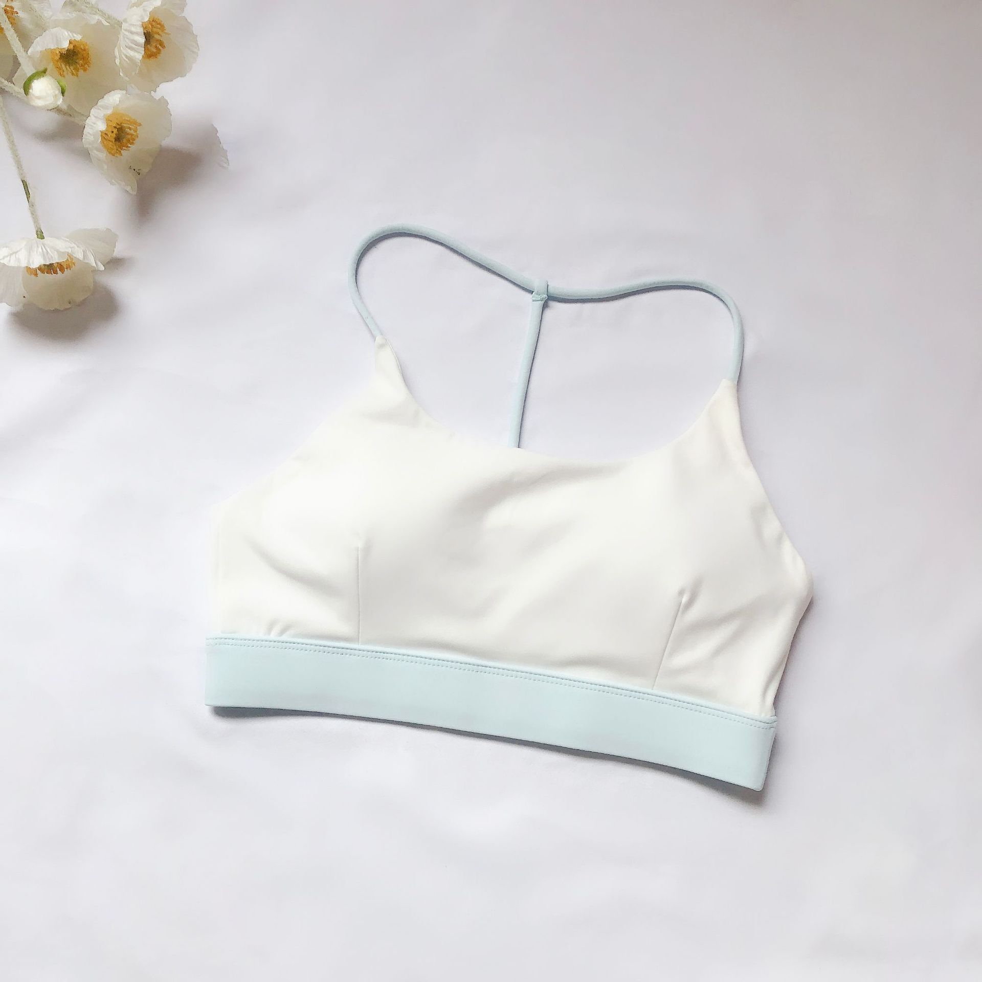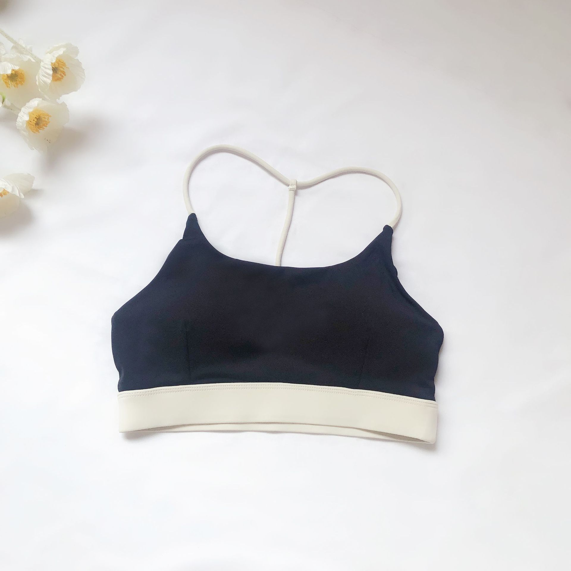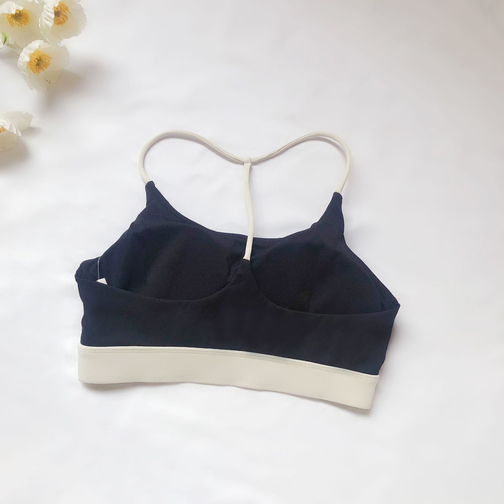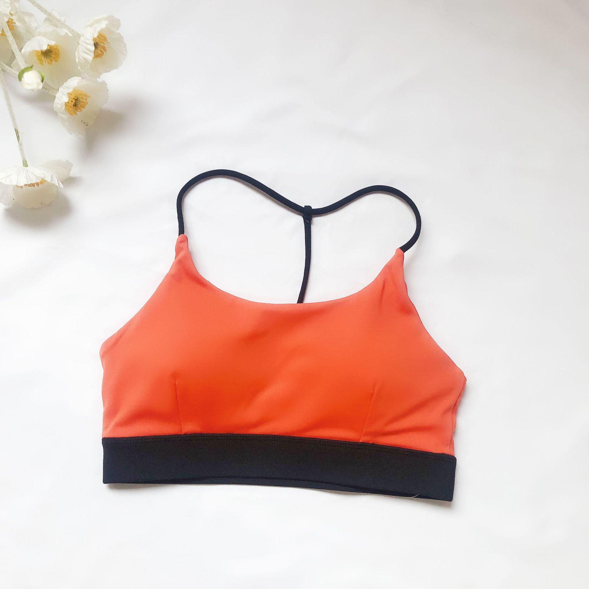 유럽과 미국의 대외 무역 스포츠 피트니스 브라 여성의 알몸 감각 아름다운 등 대비 색상 실행 요가 댄스 트레이닝 슬링 브라