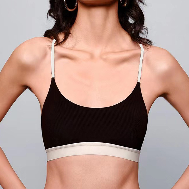 유럽과 미국의 대외 무역 스포츠 피트니스 브라 여성의 알몸 감각 아름다운 등 대비 색상 실행 요가 댄스 트레이닝 슬링 브라스토어 가기