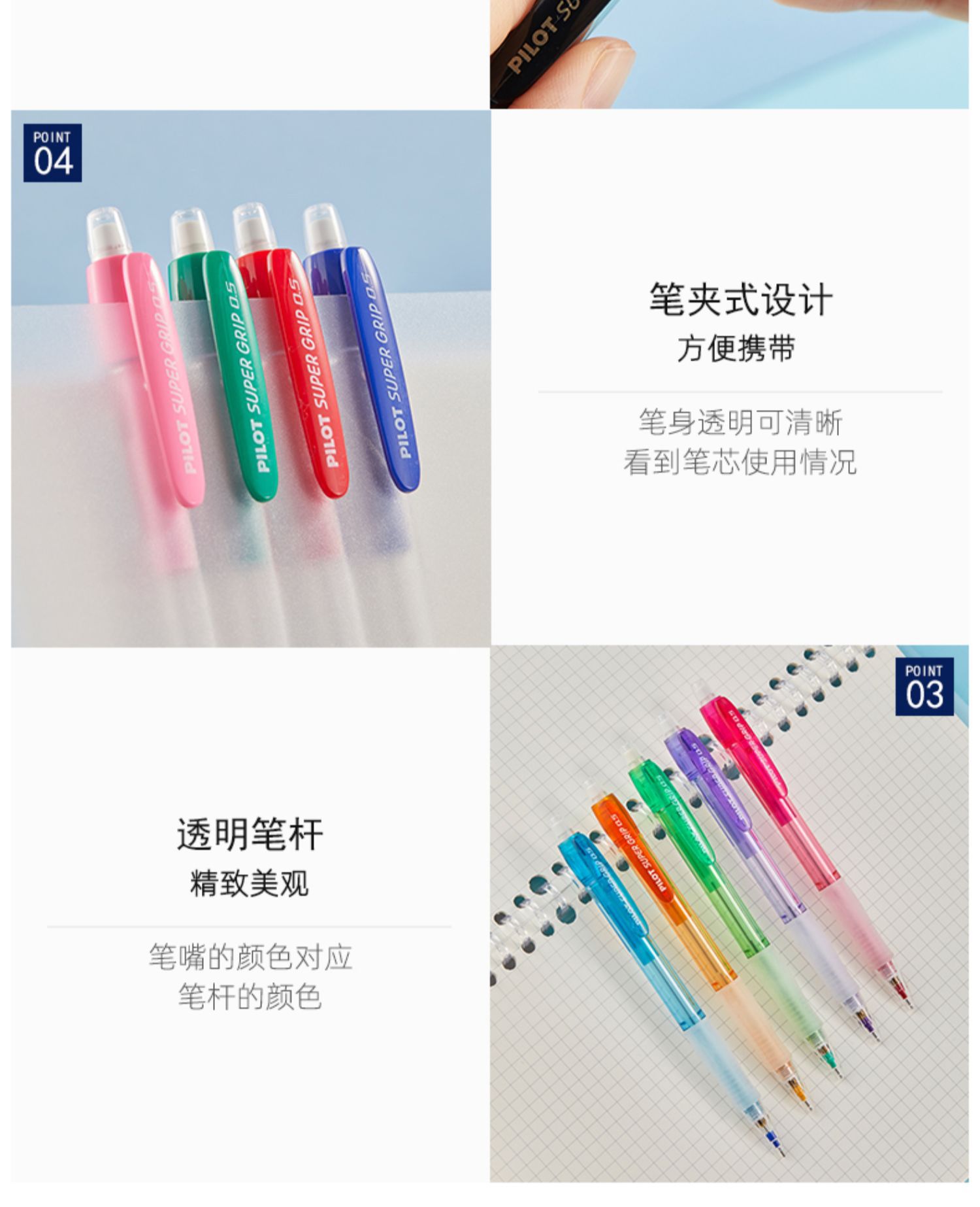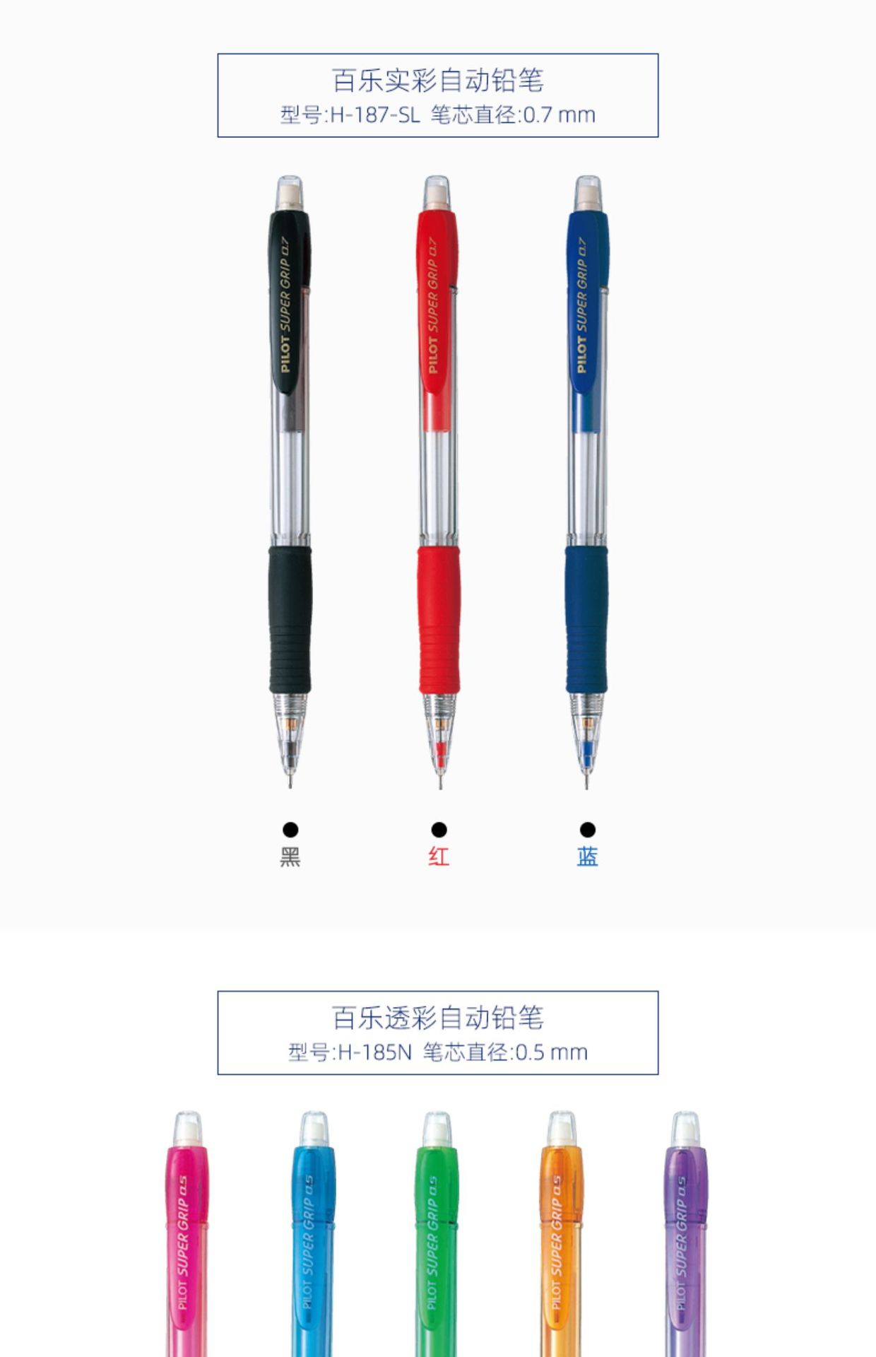 일본 파일럿 Baile 기계 연필 H-185N 컬러 투명 0.5mm 활동 연필 학생 시험 브러시
