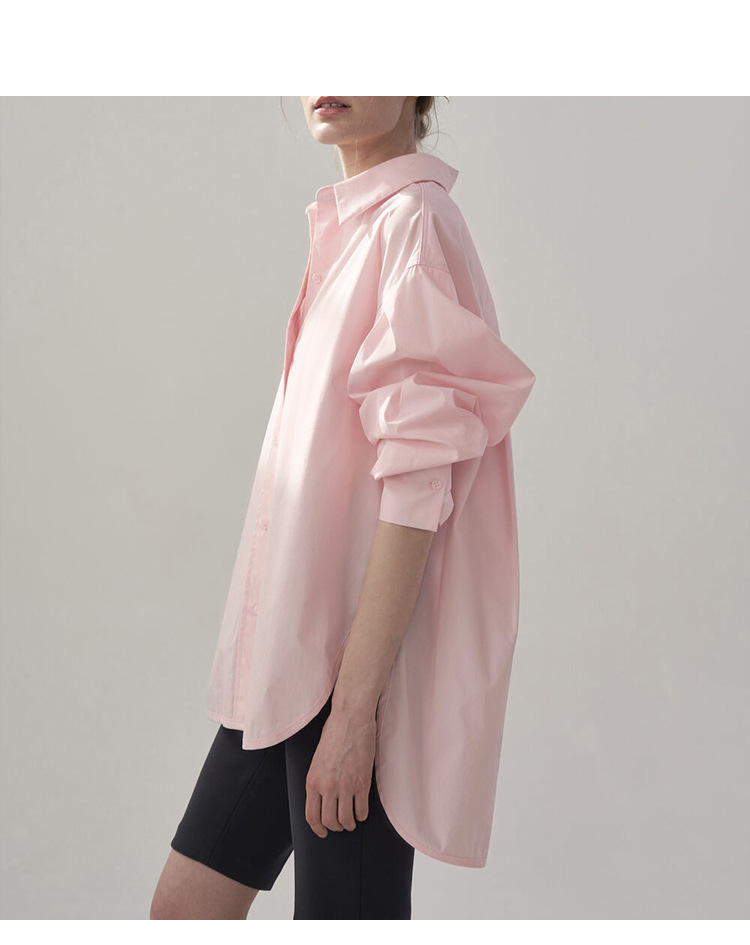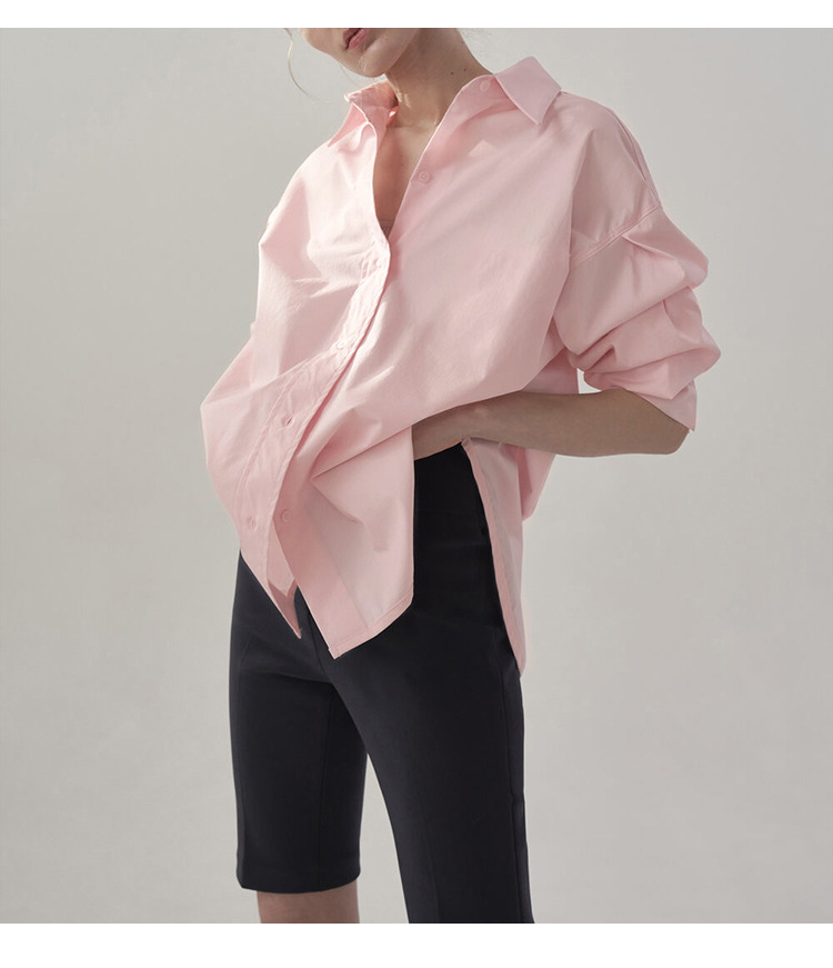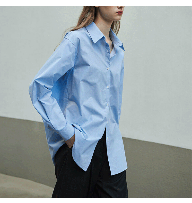 순면 셔츠 봄 가을 가디건 여성용 루즈핏 캐주얼 탑 긴팔 오버사이즈 순면 셔츠 중간 길이스토어 가기