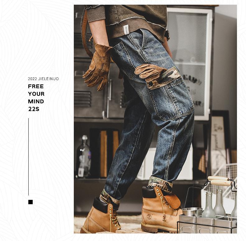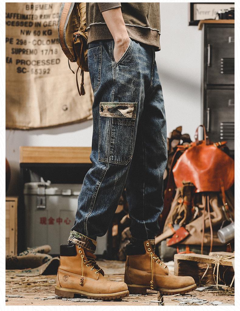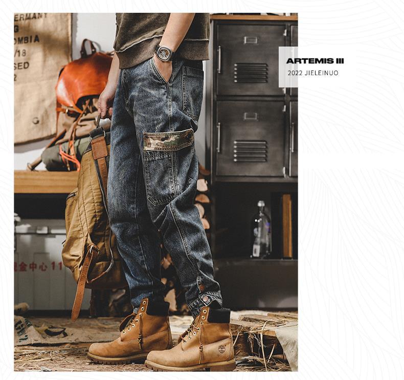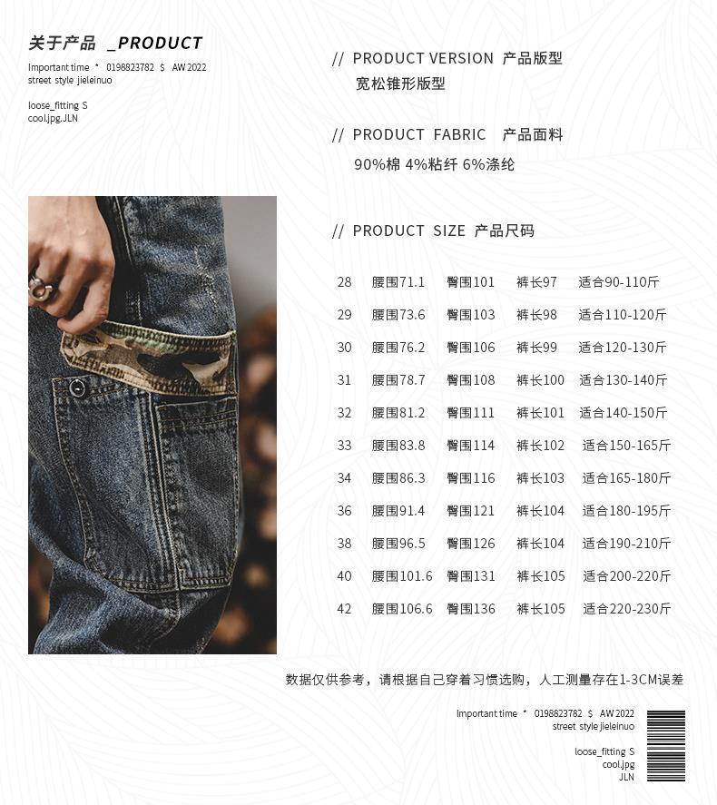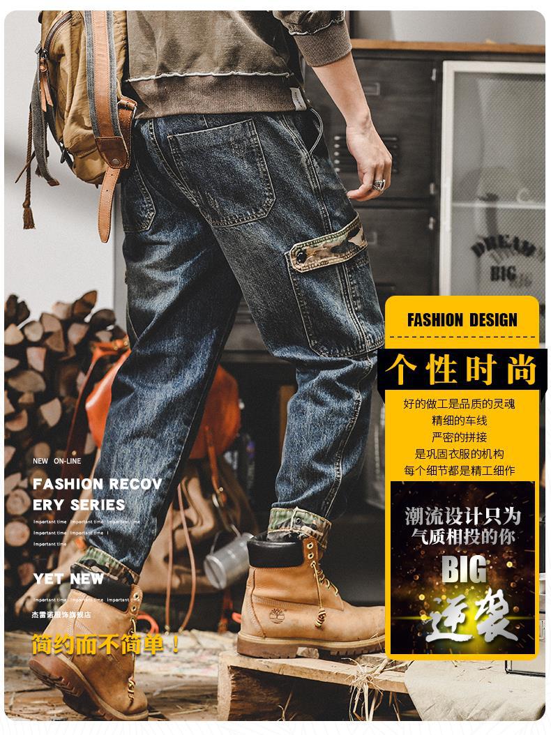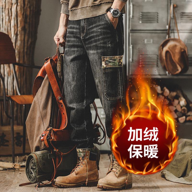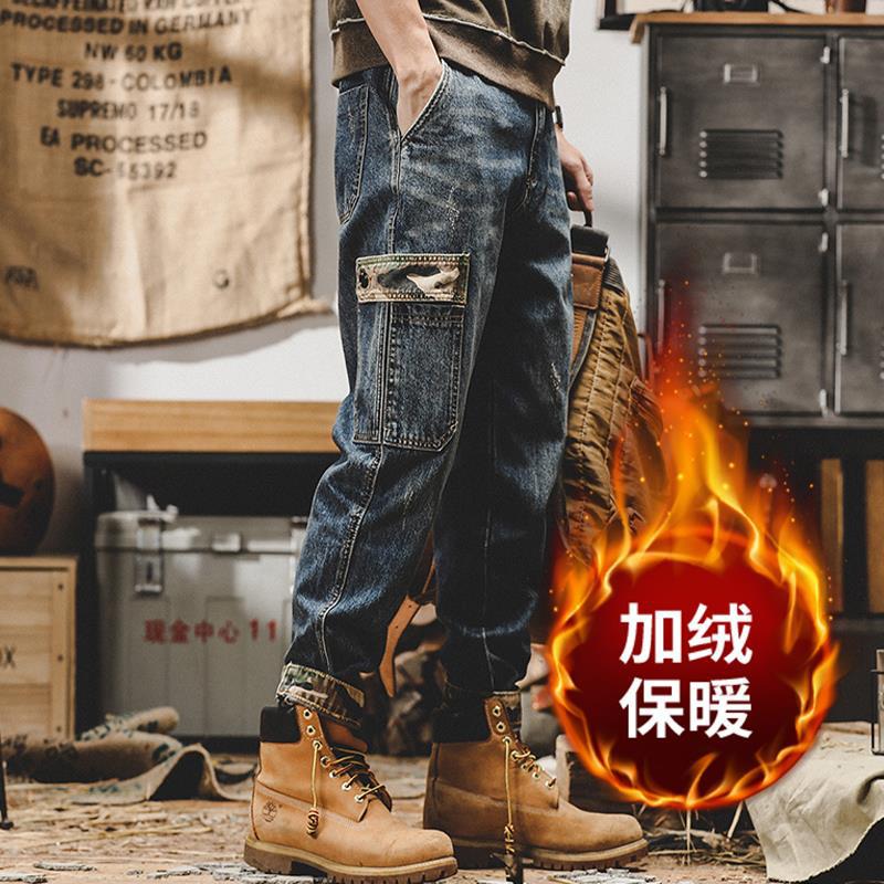 미국 무거운 접는 바지 남자의 가을과 겨울 느슨한 스트레이트 플러스 사이즈 2023 새로운 빈티지 가을 청바지 남자스토어 가기