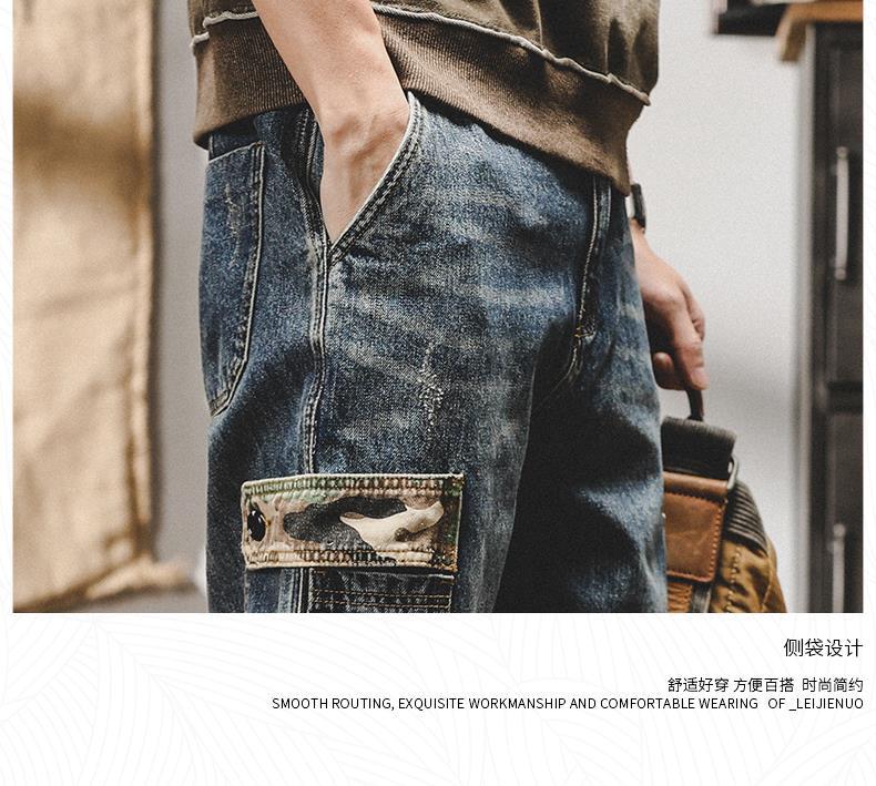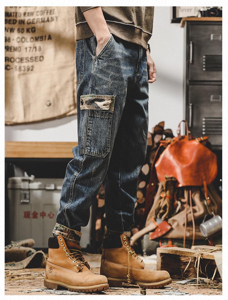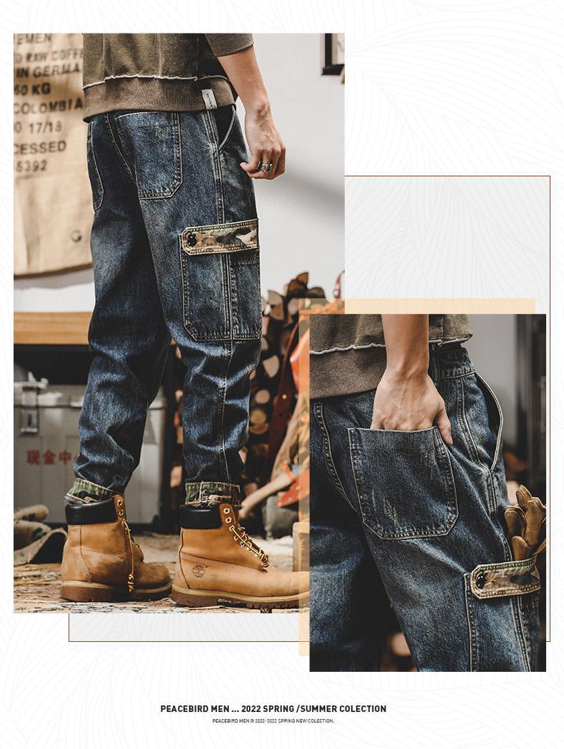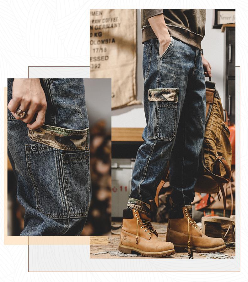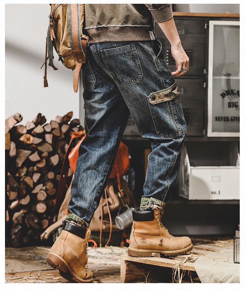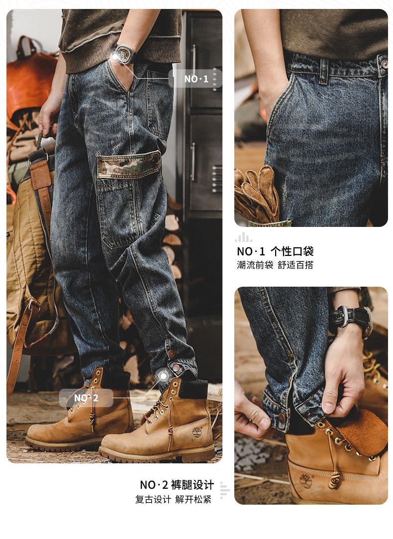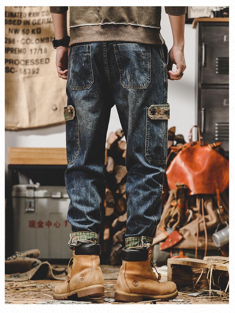 미국 무거운 접는 바지 남자의 가을과 겨울 느슨한 스트레이트 플러스 사이즈 2023 새로운 빈티지 가을 청바지 남자스토어 가기