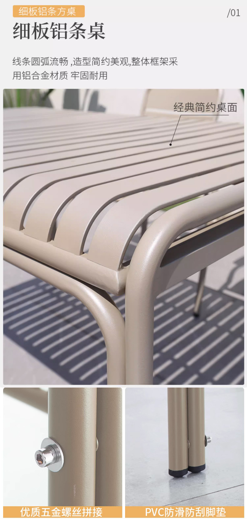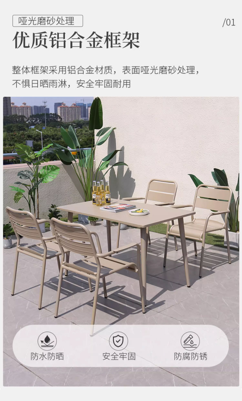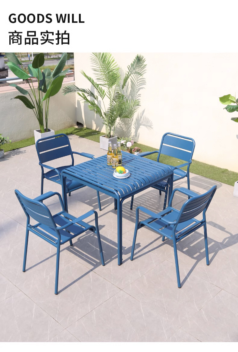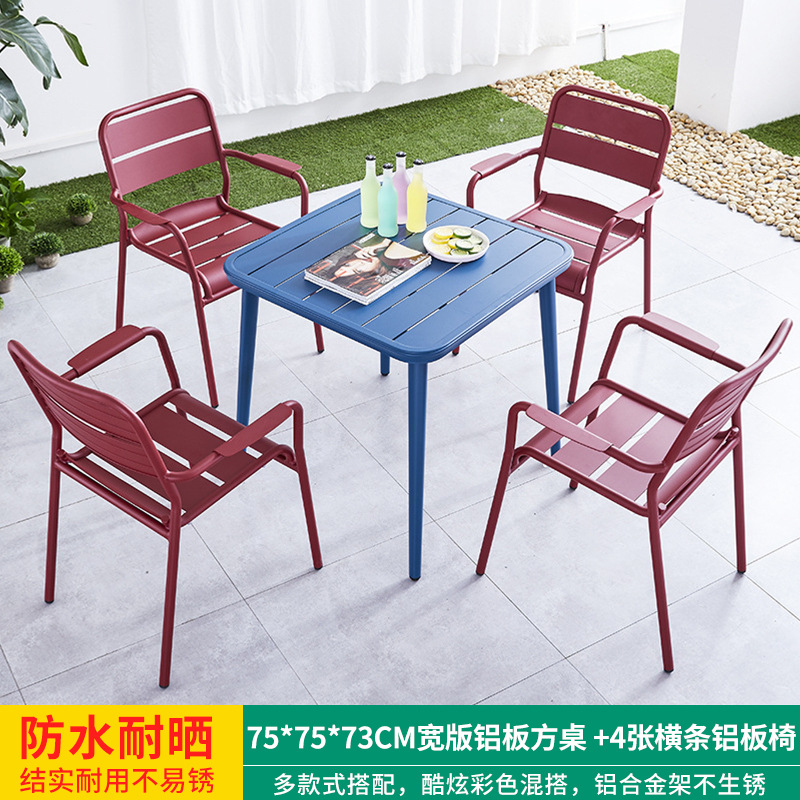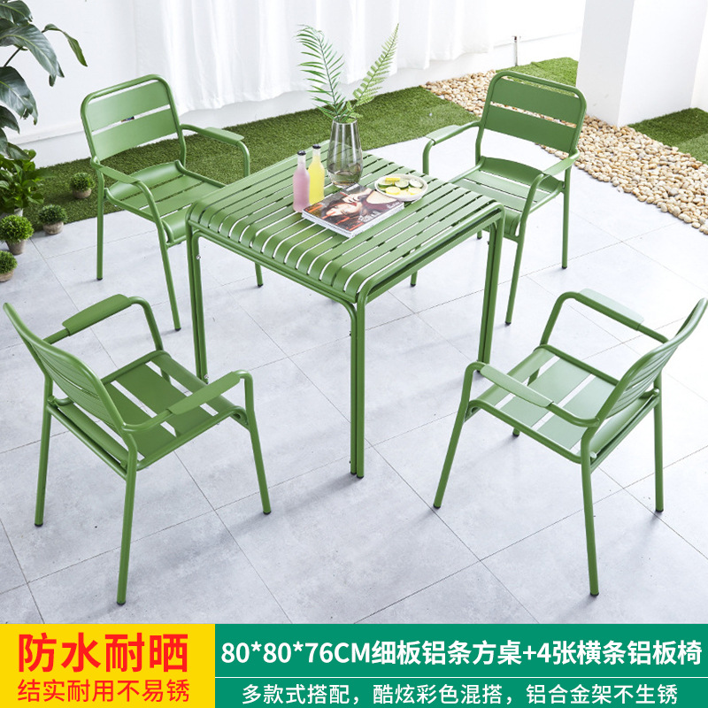 • 80*80*76cm 얇은 알루미늄 사각 테이블 + 4 수평 알루미늄 의자