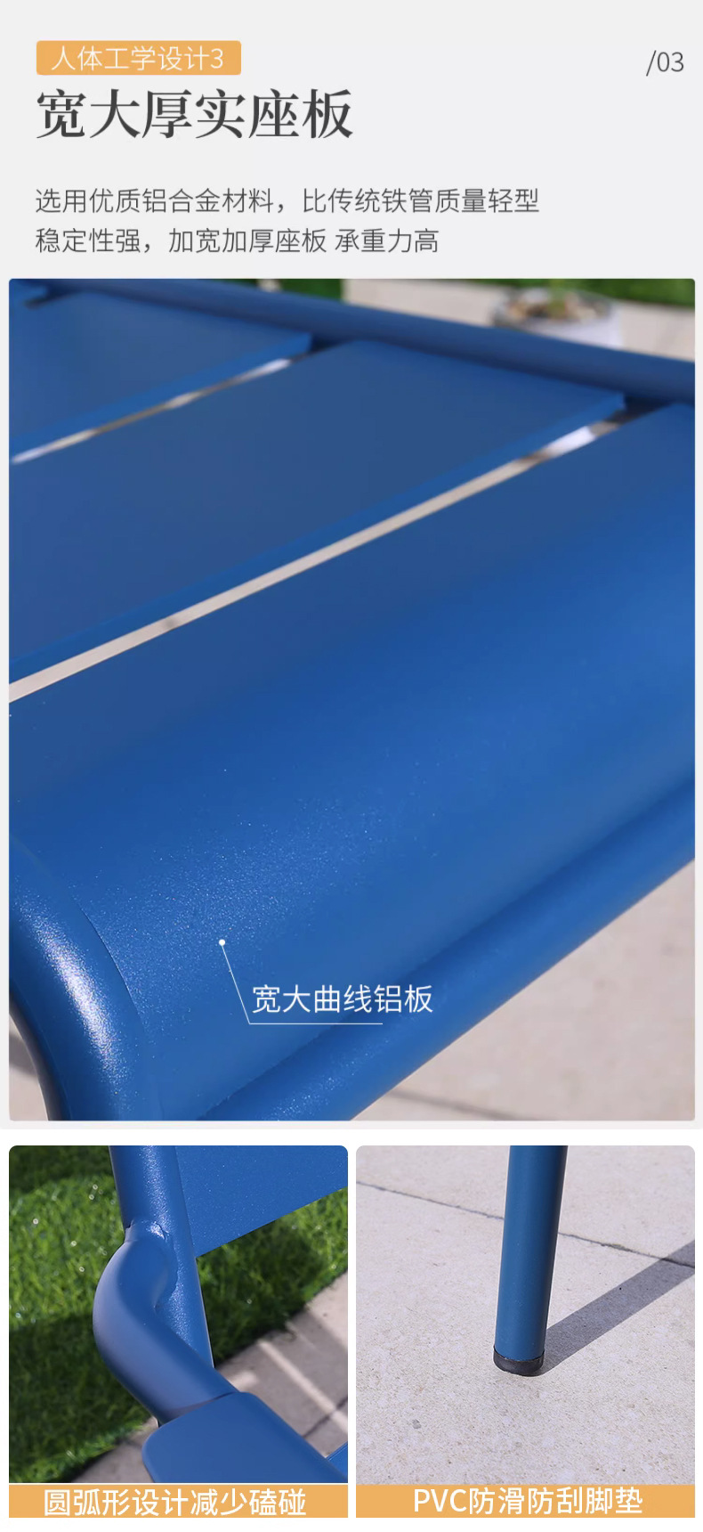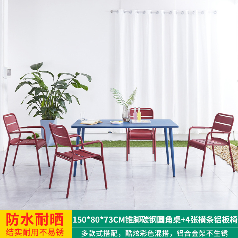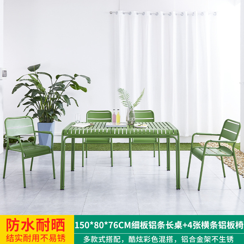 • 150*80*76cm 얇은 알루미늄 긴 테이블 + 4 수평 알루미늄 의자