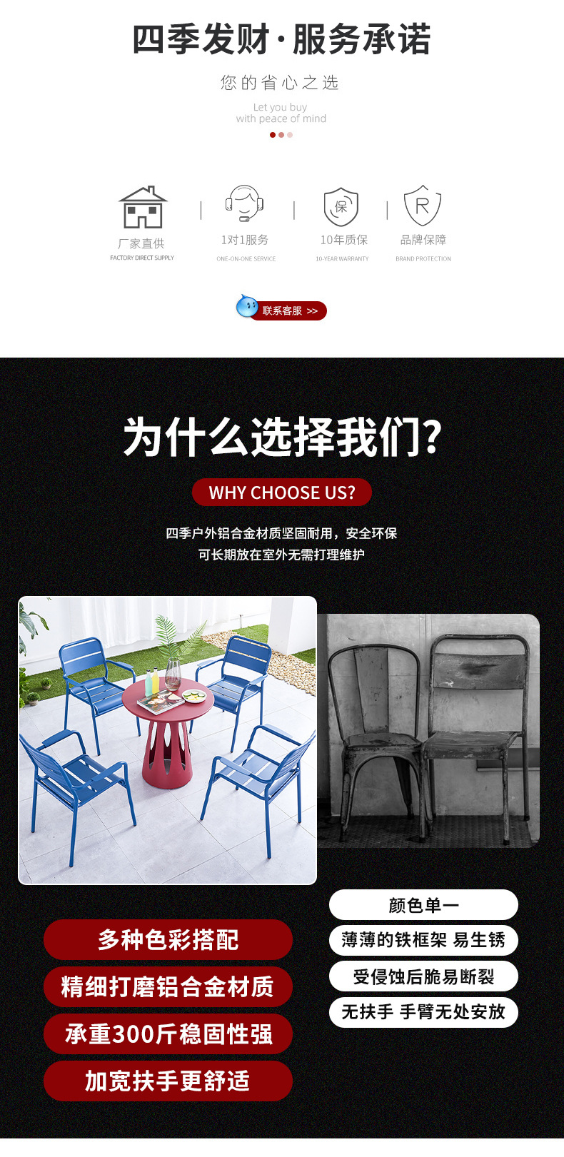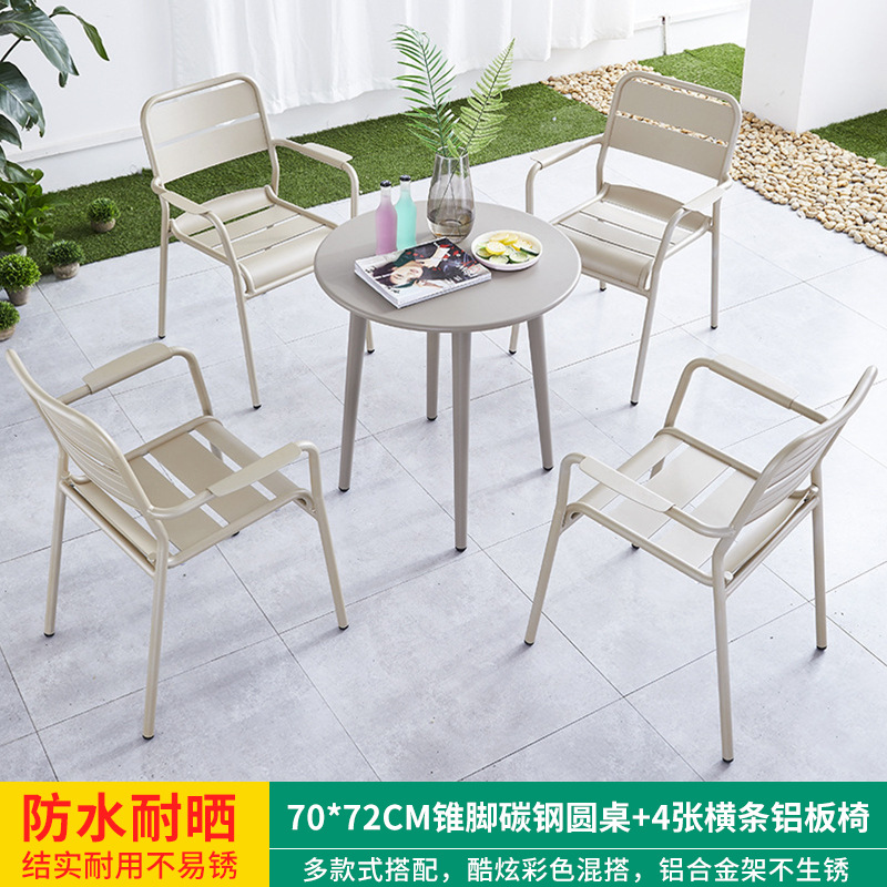 • 70*72cm 콘 풋 카본 스틸 라운드 테이블 + 4 수평 알루미늄 의자