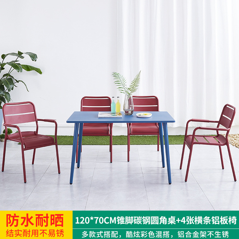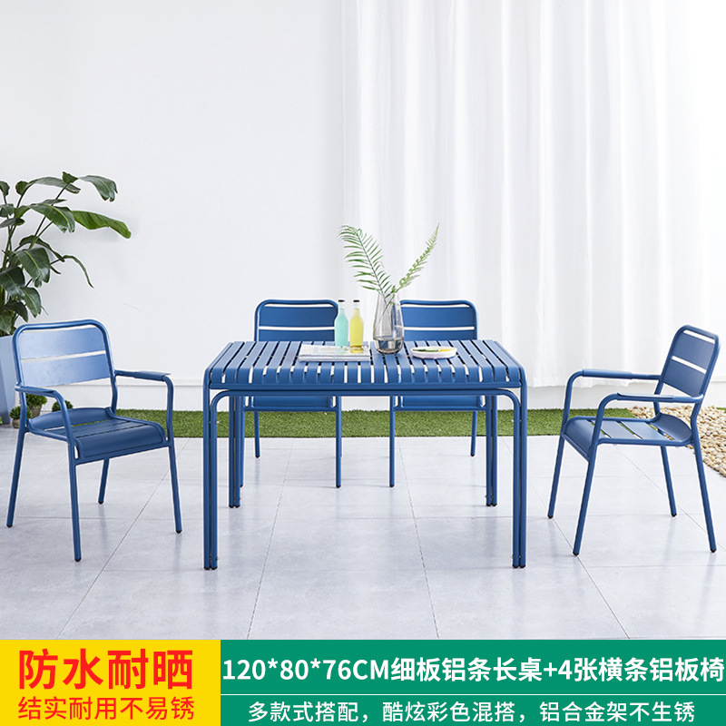 • 120*80*76cm 얇은 알루미늄 긴 테이블 + 4 수평 알루미늄 의자