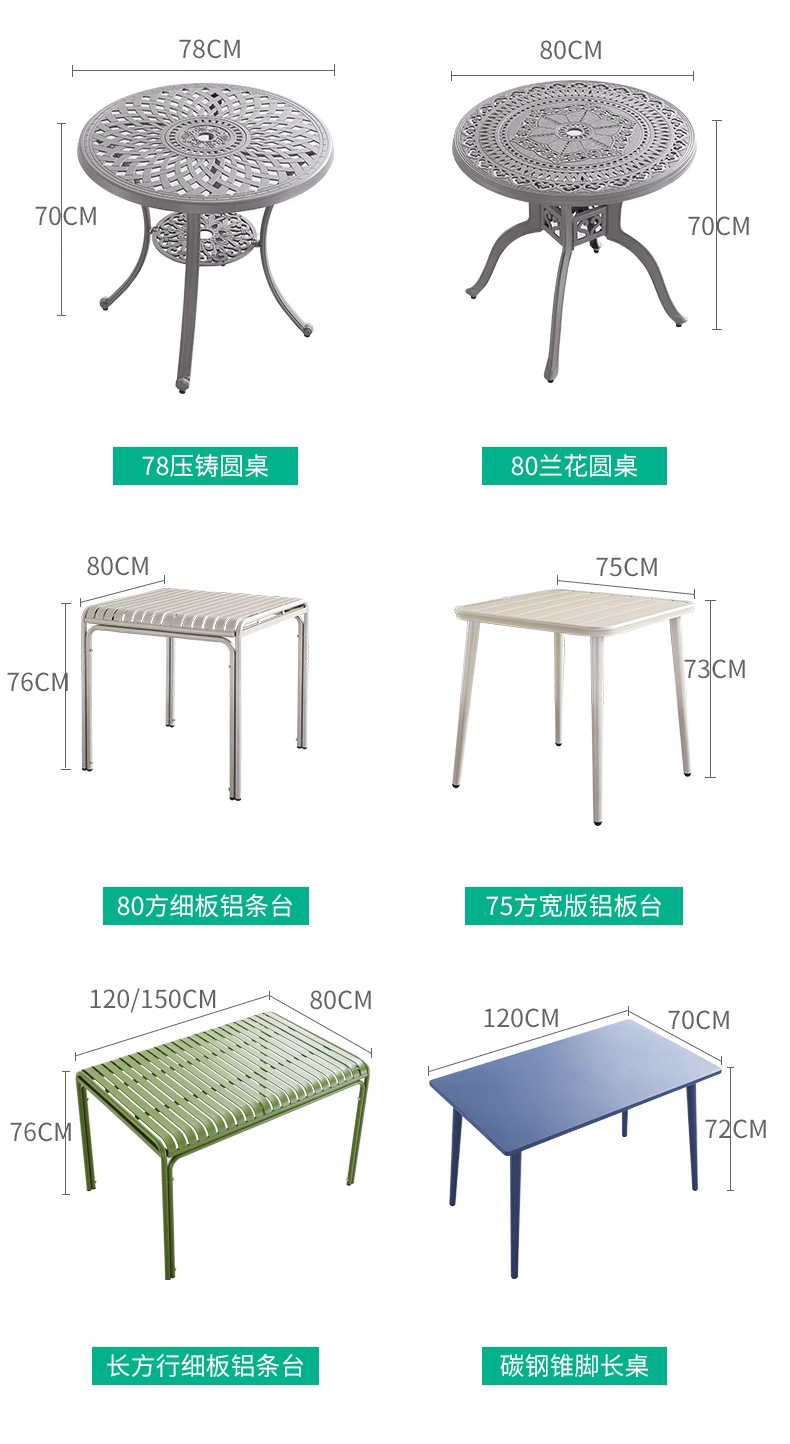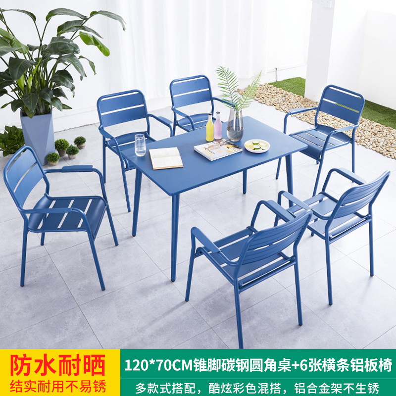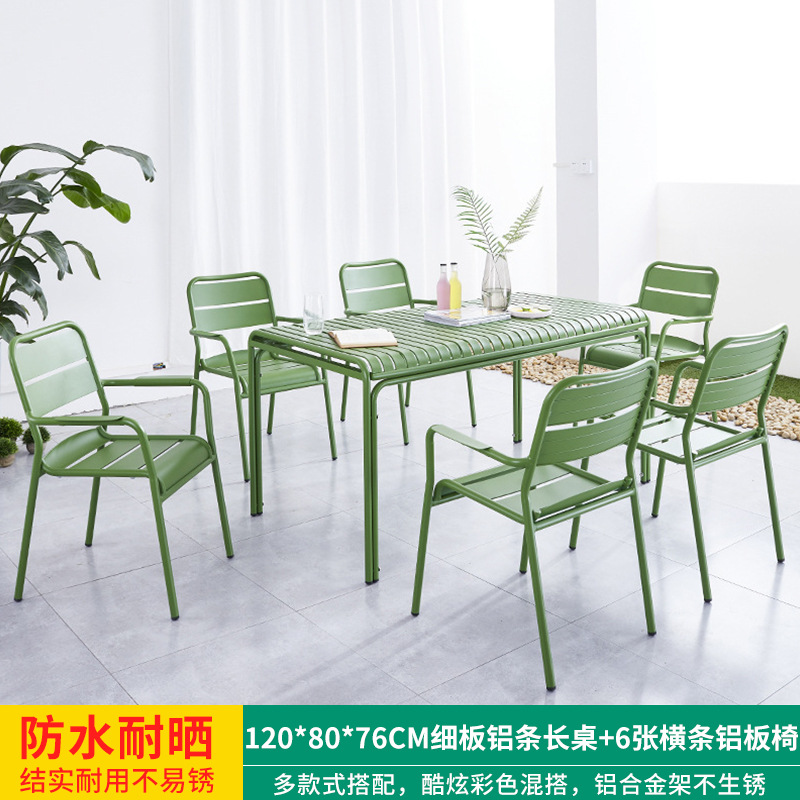 • 120*80*76cm 얇은 알루미늄 긴 테이블 + 6 수평 알루미늄 의자