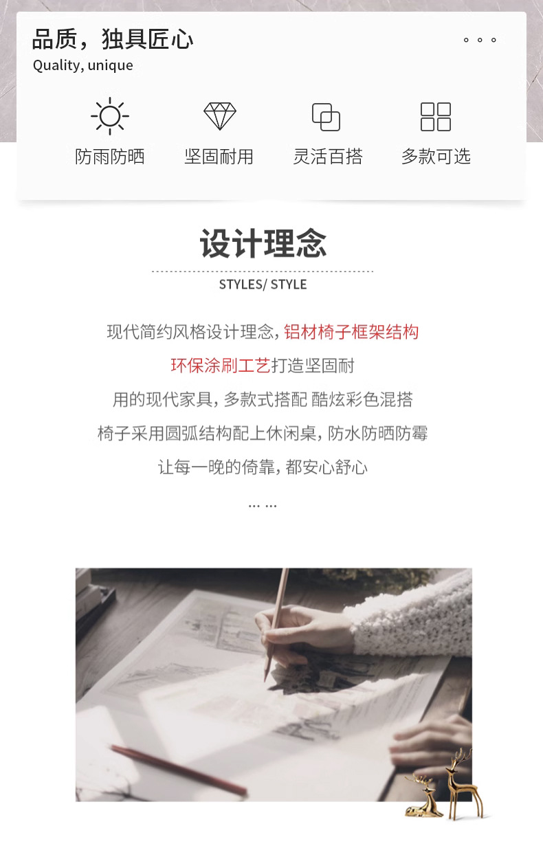• 50*48cm ETA 중공 커피 테이블 + 수평 알루미늄 의자 2 개