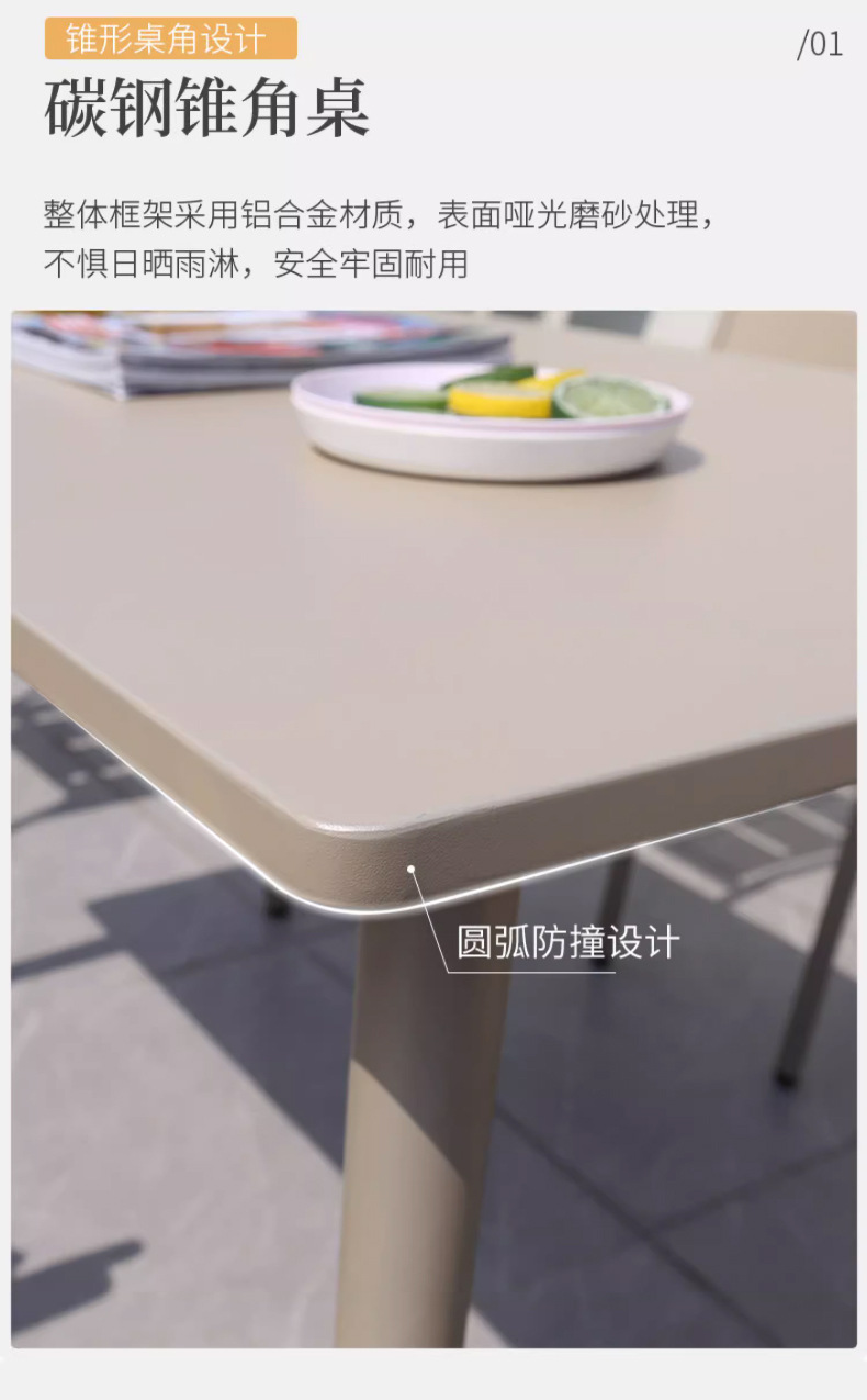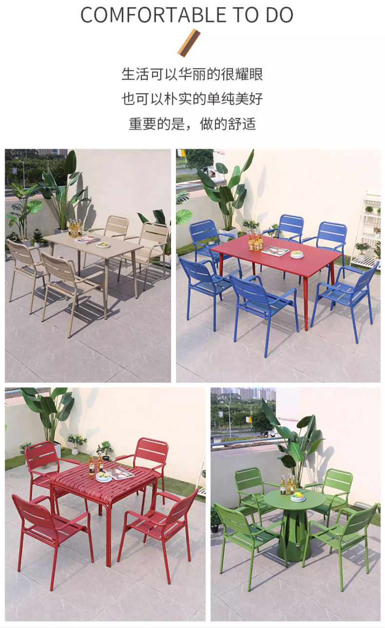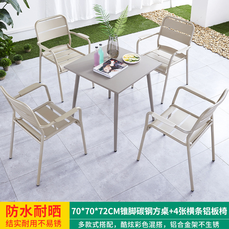 • 70*70*72cm 콘 피트 카본 스틸 스퀘어 테이블 + 4 수평 알루미늄 의자